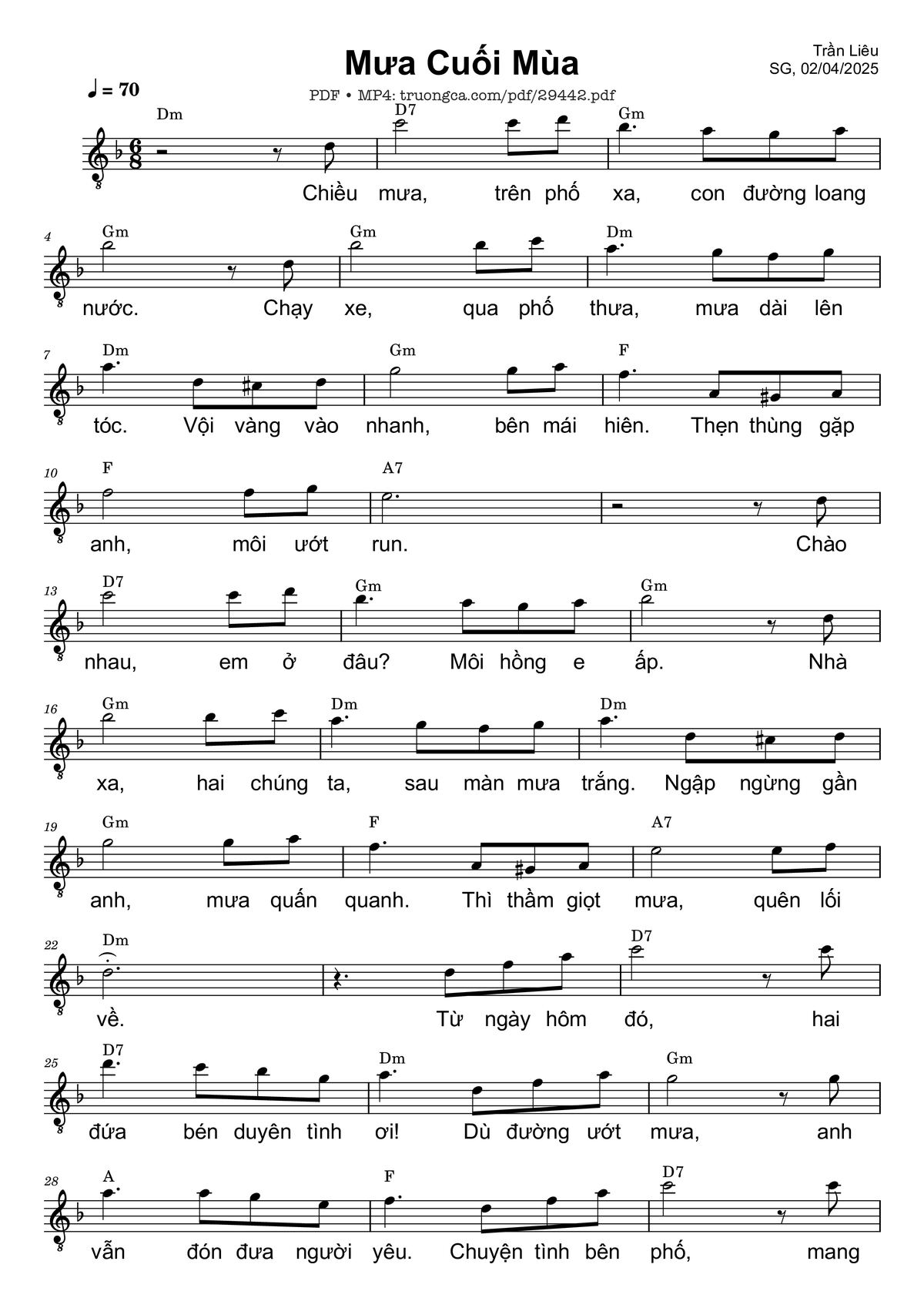 Trần Liêu Chiều mưa trên phố xa con đường loang nước [PDF] [Sheet] [Lời H.A] [Mp4/Midi]