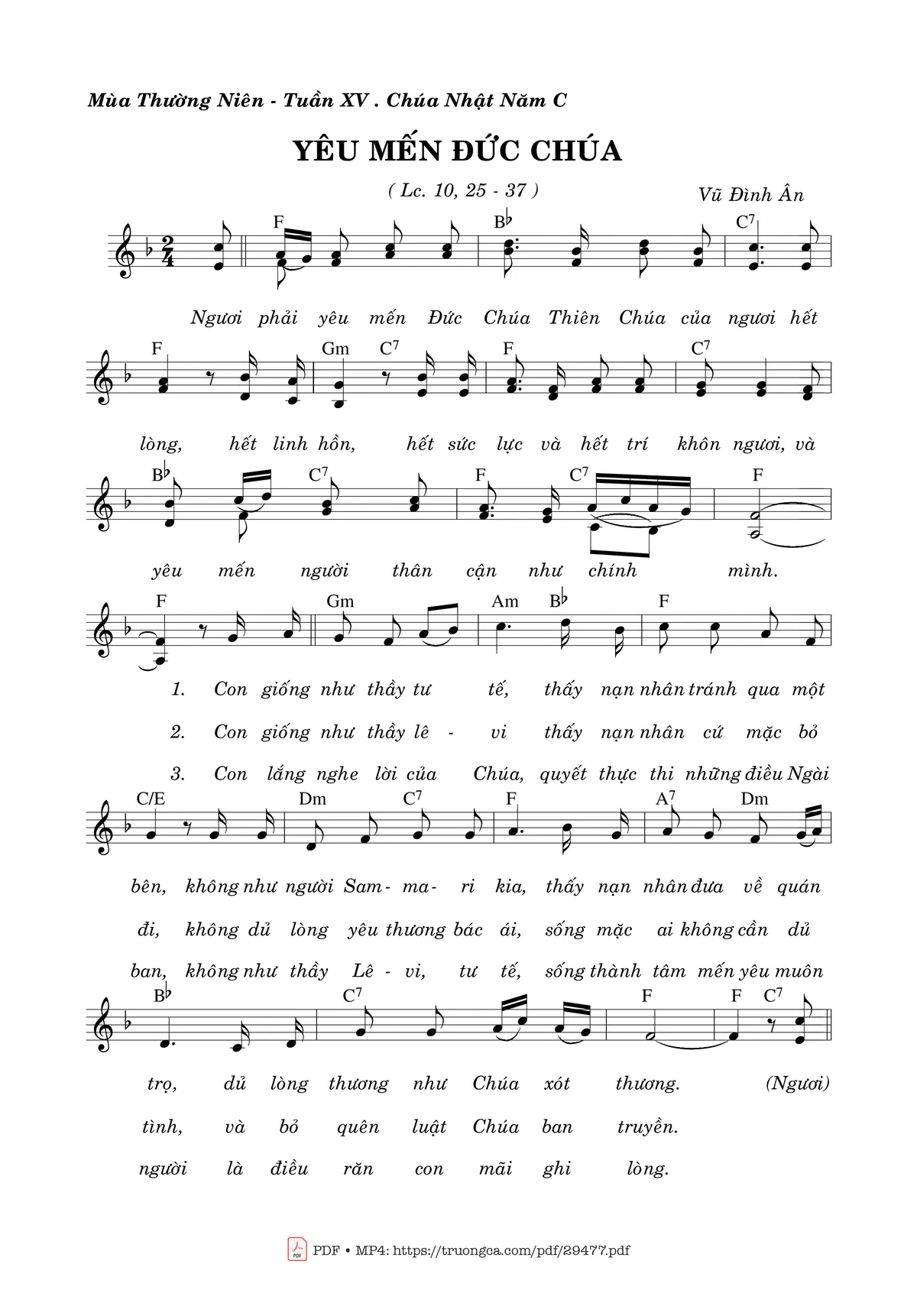 Vũ Đình Ân Hiệp Lễ Chúa Nhật C Thường Niên Ngươi phải yêu mến Đức Chúa Thiên Chúa của ngươi hết lòng hết linh hồn [PDF] [Sheet] [Lời H.A] [Mp4/Midi]