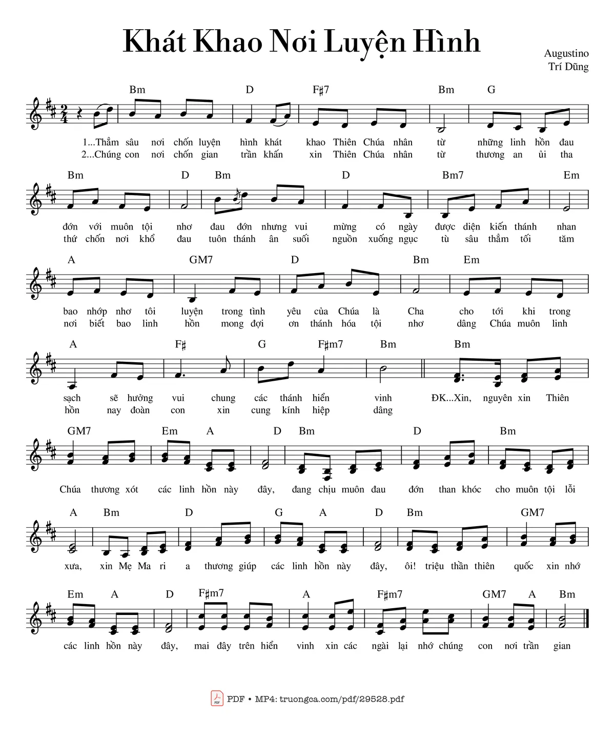 ĐK: Xin, nguyện xin Thiên Chúa thương xót các linh hồn này đây, đang chịu muôn đau đớn than khóc cho muôn tội lỗi xưa, xin Mẹ Ma-ri-a thương giúp các linh hồn này đây, ôi! Triều thần thiên quốc xin nhớ các linh hồn này đây, mai đây trên hiển vinh xin các ngài lại nhớ chúng con nơi trần gian.