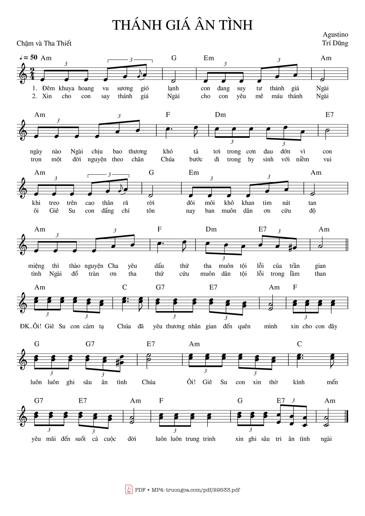 Trang 1 của Sheet nhạc PDF bài hát Thánh giá ân tình - Agustino Trí Dũng
