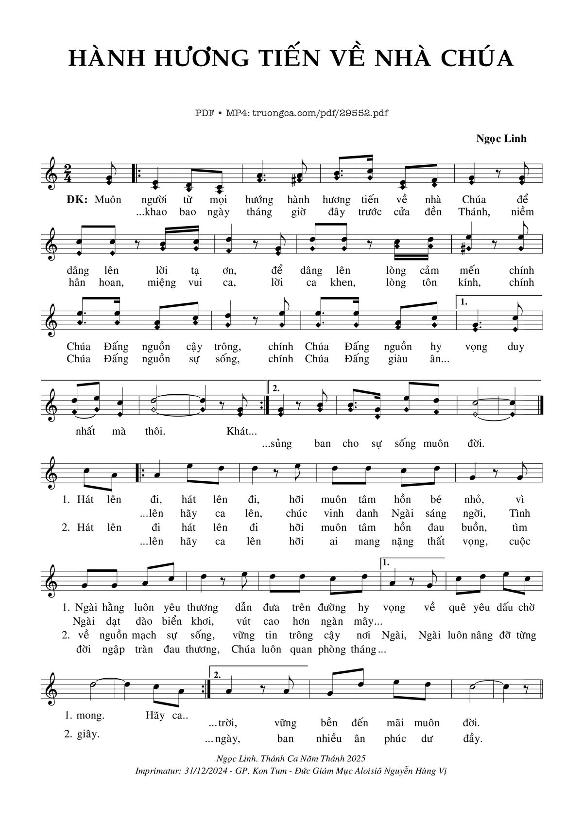 Ngọc Linh Muôn người từ mọi hướng hành hương tiến về nhà Chúa để dâng lên lời tạ ơn [PDF] [Sheet] [Lời H.A] [Mp4/Midi]