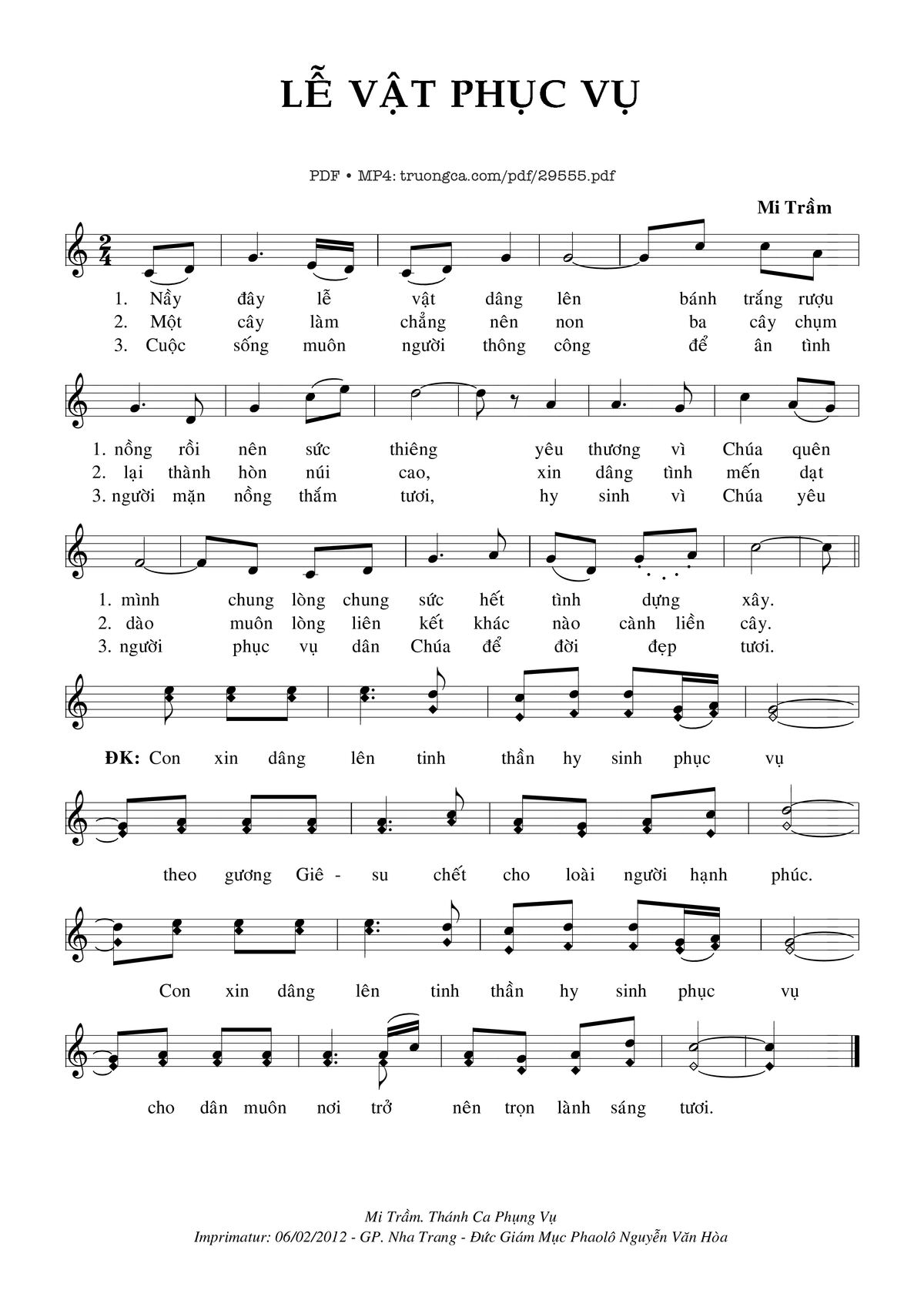Mi Trầm Dâng Lễ Này đây lễ vật dâng lên bánh trắng rượu nồng rồi nên sức thiêng [PDF] [Sheet] [Lời H.A] [Mp4/Midi]