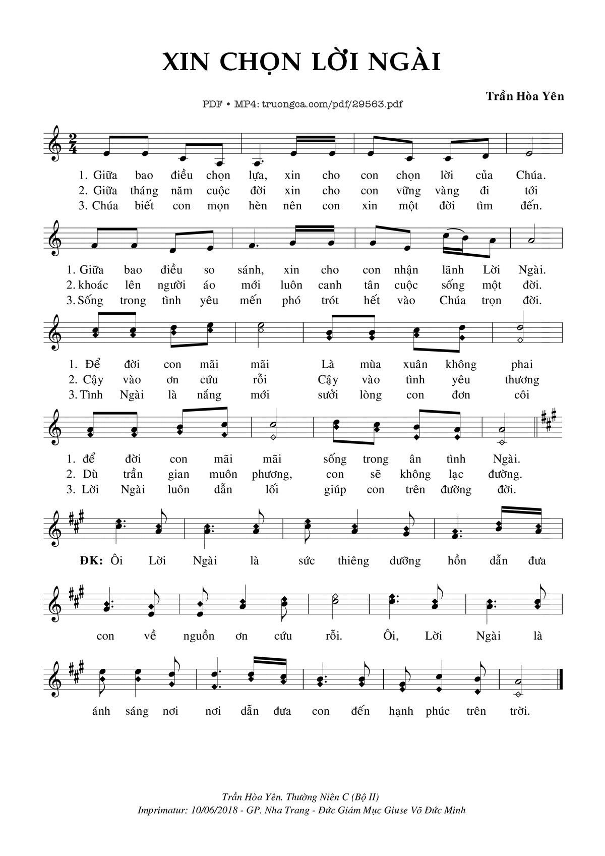 Trần Hòa Yên Giữa bao điều chọn lựa xin cho con chọn lời của Chúa [PDF] [Sheet] [Lời H.A] [Mp4/Midi]
