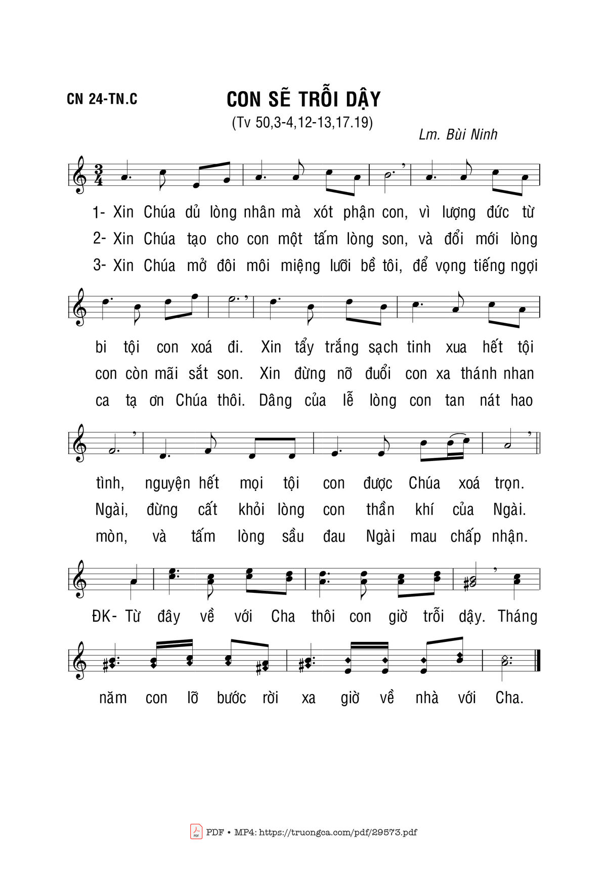 Bùi Ninh Xin Chúa dủ lòng nhân mà xót phận con vì lượng đức từ bi tội con xóa đi [PDF] [Sheet] [Lời H.A] [Mp4/Midi]