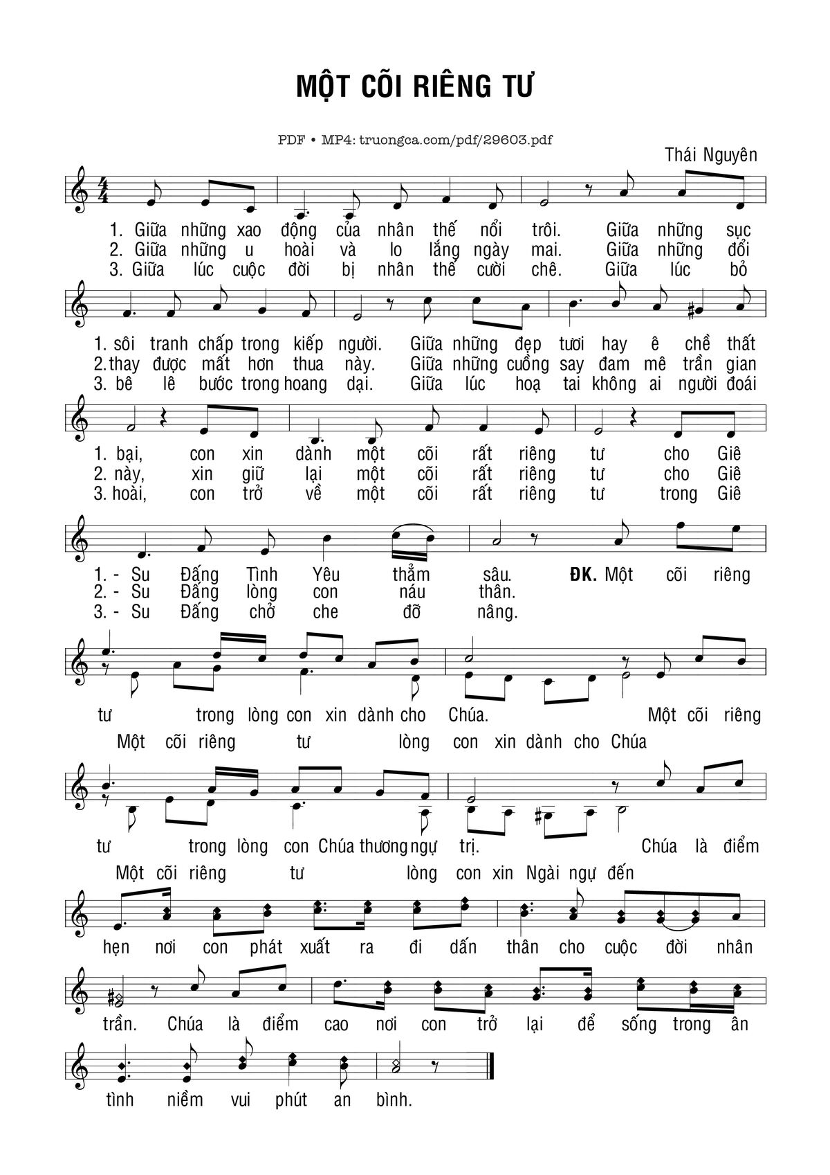 Điệp khúc. Một cõi riêng tư trong lòng con xin dành cho Chúa. Một cõi riêng tư trong lòng con Chúa thương ngự trị. Chúa là điểm hẹn nơi con phát xuất ra đi dấn thân cho cuộc đời