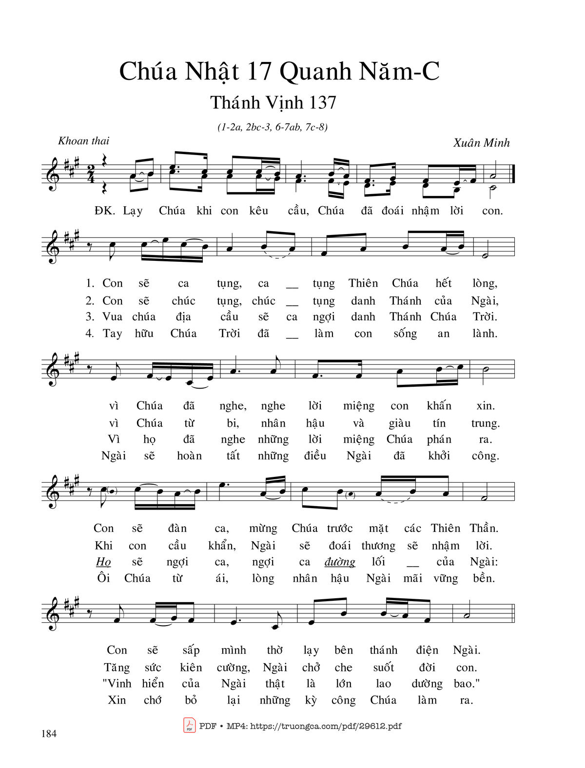 Xuân Minh Lạy Chúa khi con kêu cầu Chúa đã đoái nhậm lời con [PDF] [Sheet] [Lời H.A] [Mp4/Midi]