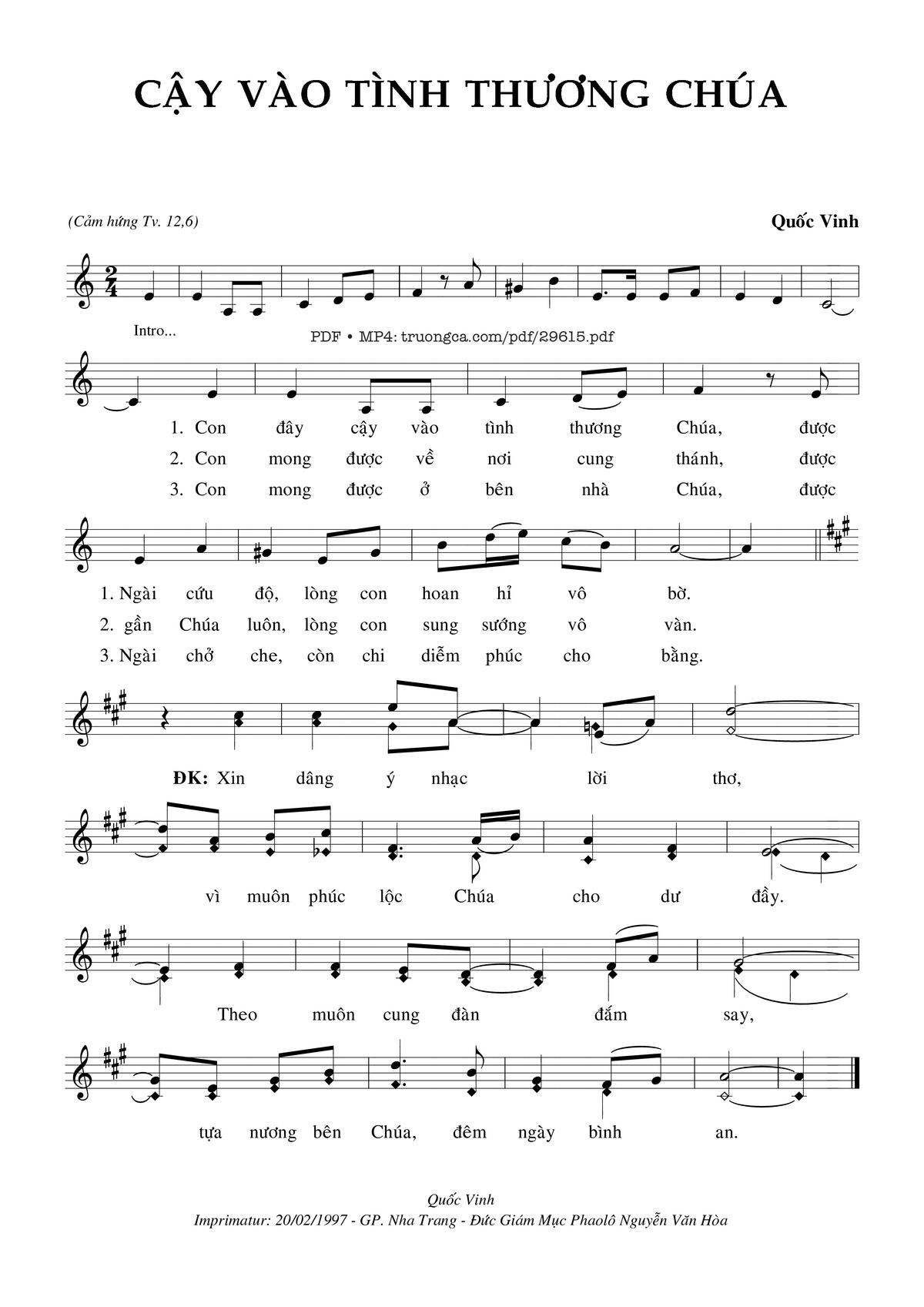 Quốc Vinh Con đây cậy vào tình thương Chúa được Ngài cứu độ [PDF] [Sheet] [Lời H.A] [Mp4/Midi]