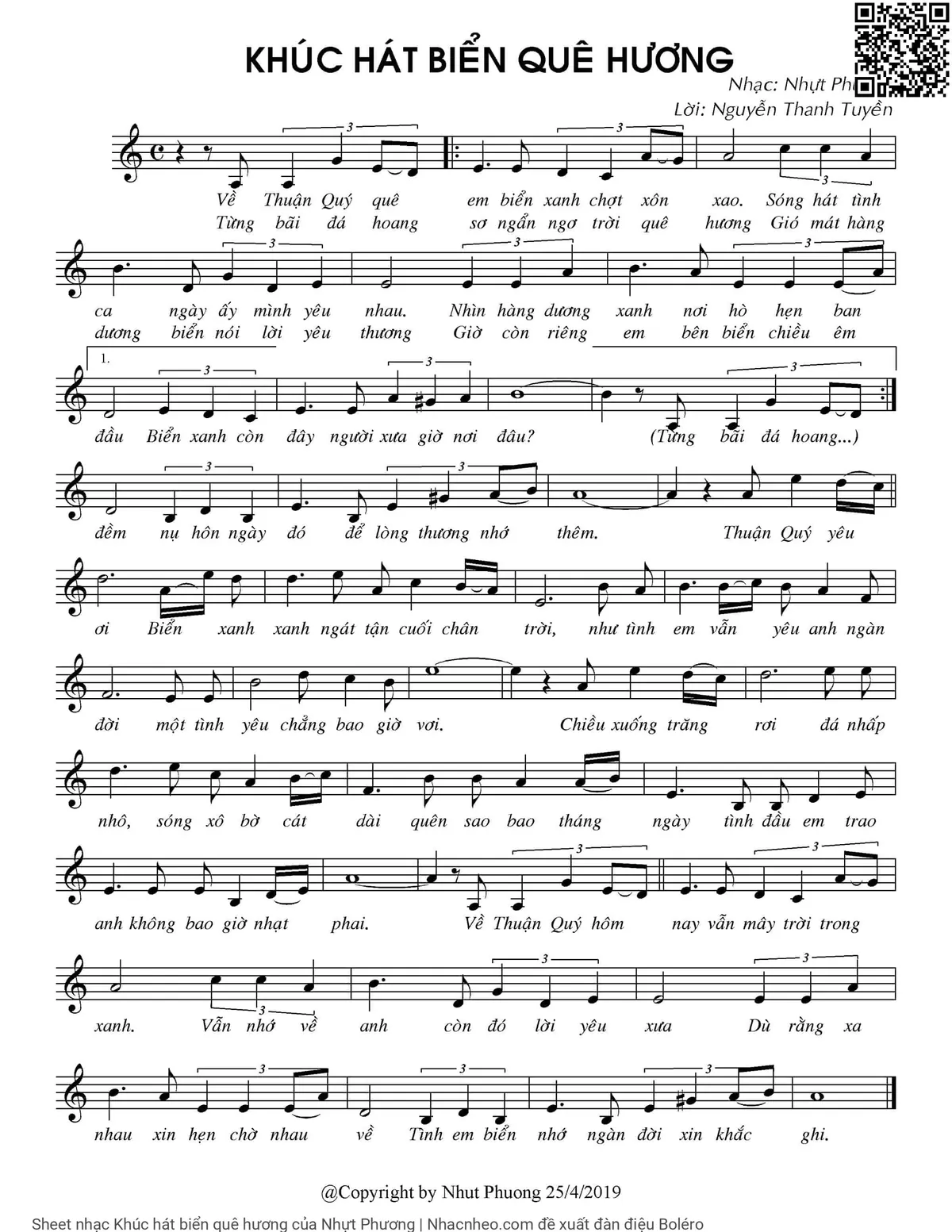 Nhựt Phương Về Thuận Quý quê em biển xanh chợt xôn xao [PDF] [Sheet] [Lời H.A] [Mp4/Midi]