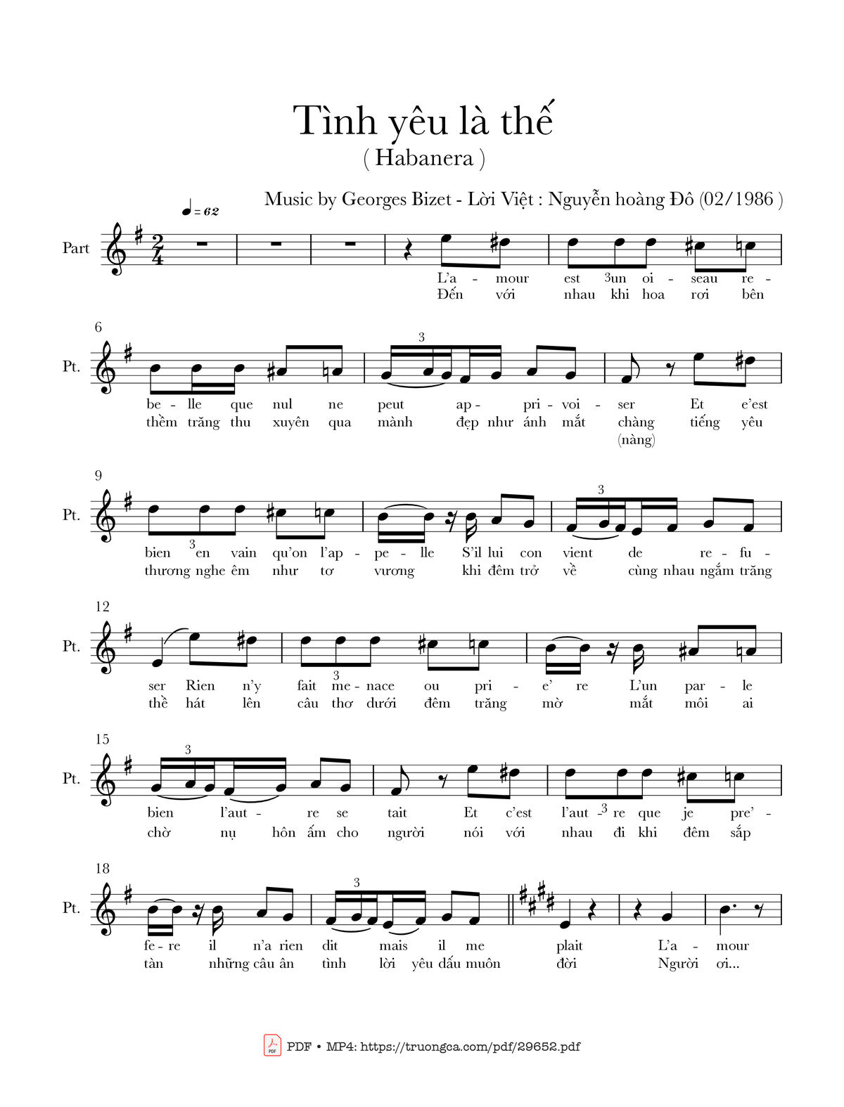 Các sheet PDF tương tự Tình yêu là thế (Habanera):
