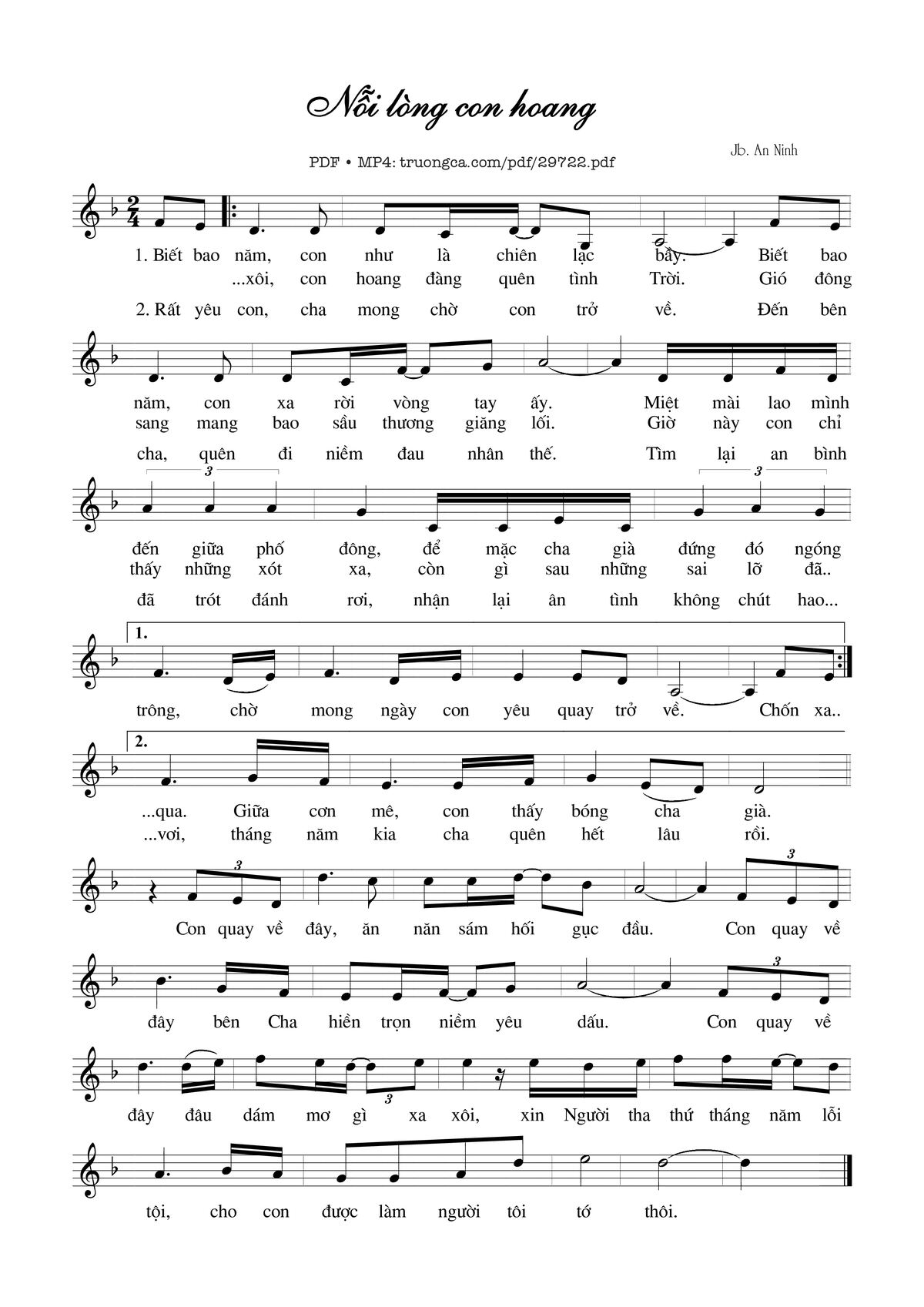 Sheet Nỗi lòng con hoang (Lc. 15) PDF (Jb. An Ninh), hợp âm