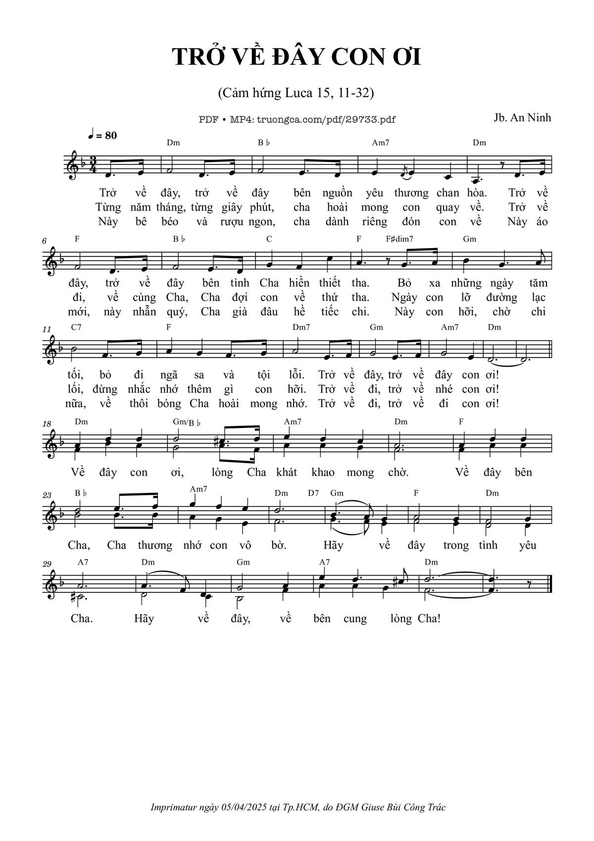 Trang 1 của Sheet nhạc PDF bài hát Trở về đây con ơi - Jb. An Ninh