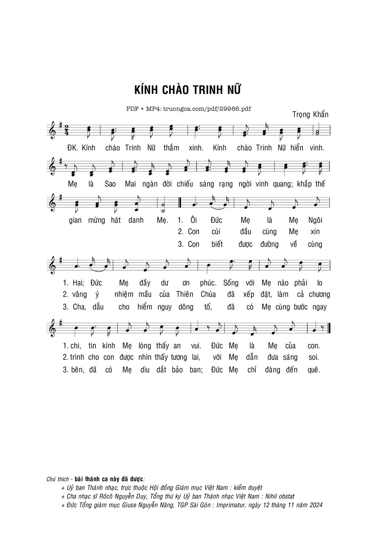 Sheet Kính chào Trinh Nữ PDF (Trọng Khẩn), hợp âm