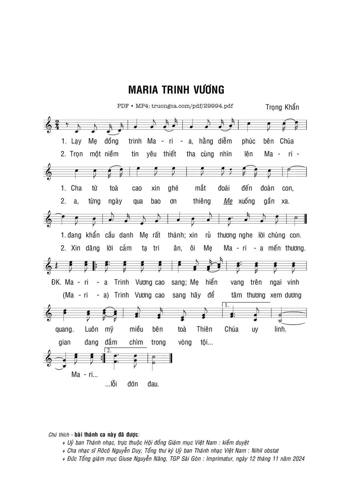 Trang 1 của Sheet nhạc PDF bài hát Maria Trinh Vương - Trọng Khẩn