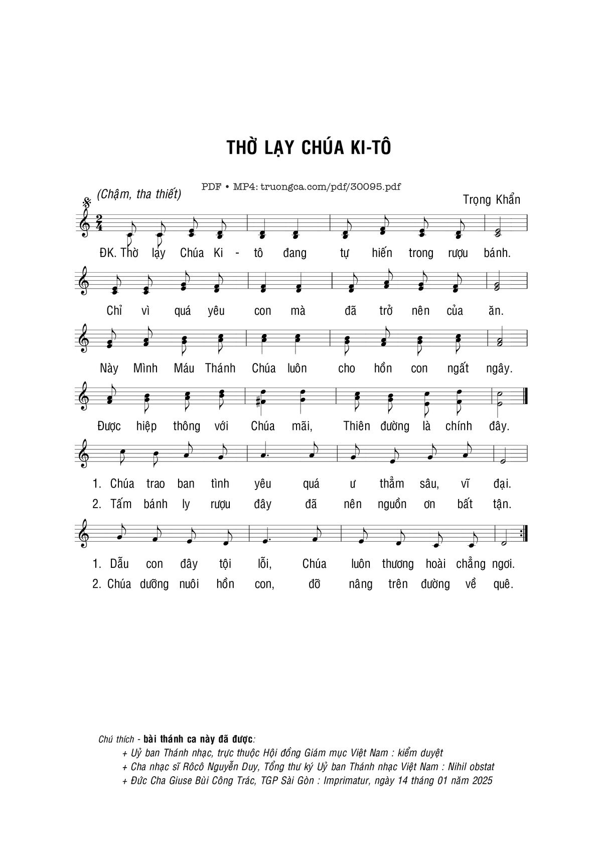 Trang 1 của Sheet nhạc PDF bài hát Thờ lạy Chúa Ki-tô - Trọng Khẩn