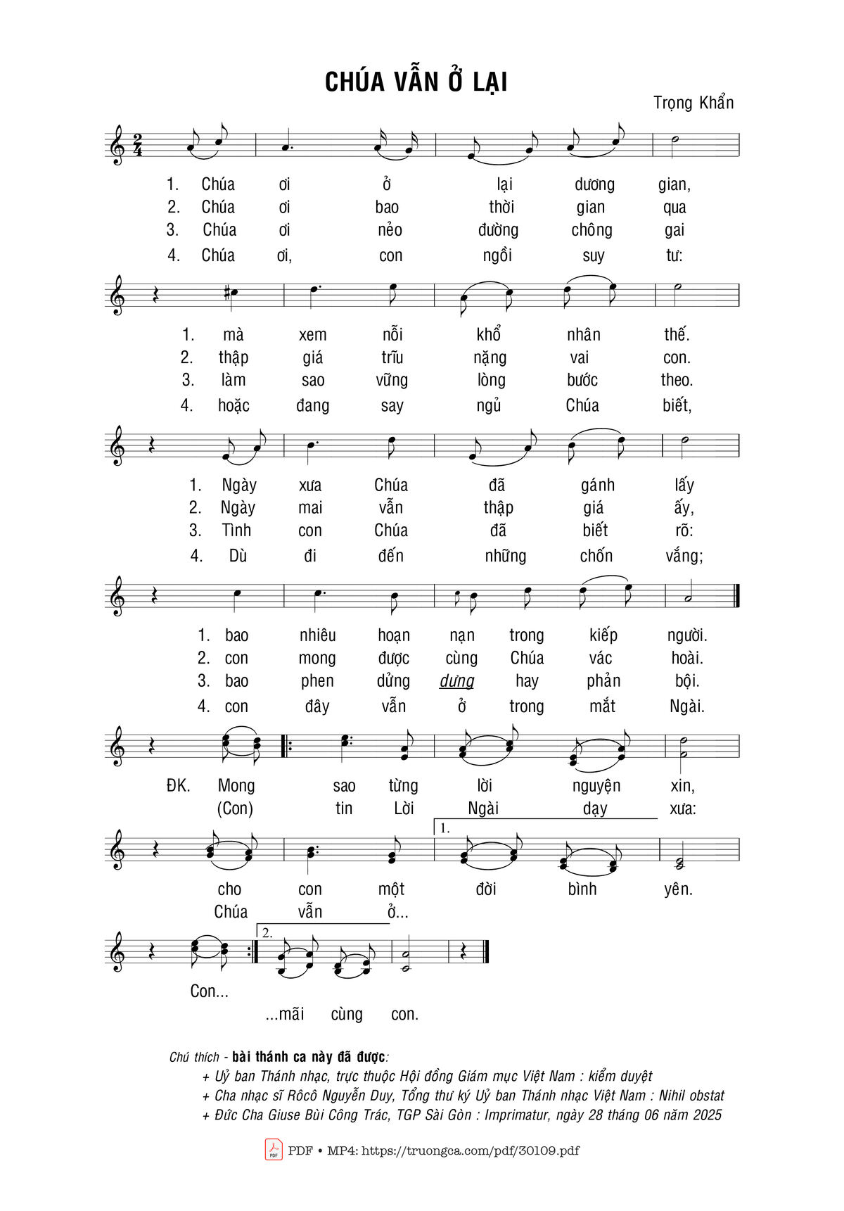 Trang 1 của Sheet nhạc PDF bài hát Chúa vẫn ở lại - Trọng Khẩn