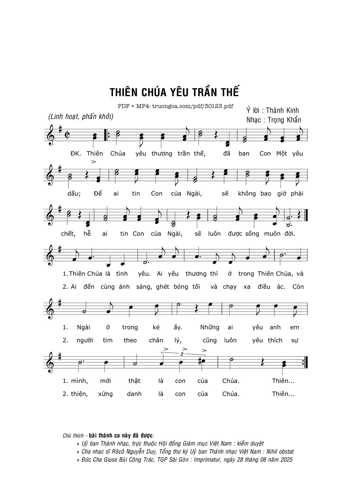 Trang 1 của Sheet nhạc PDF bài hát Thiên Chúa yêu trần thế - Trọng Khẩn