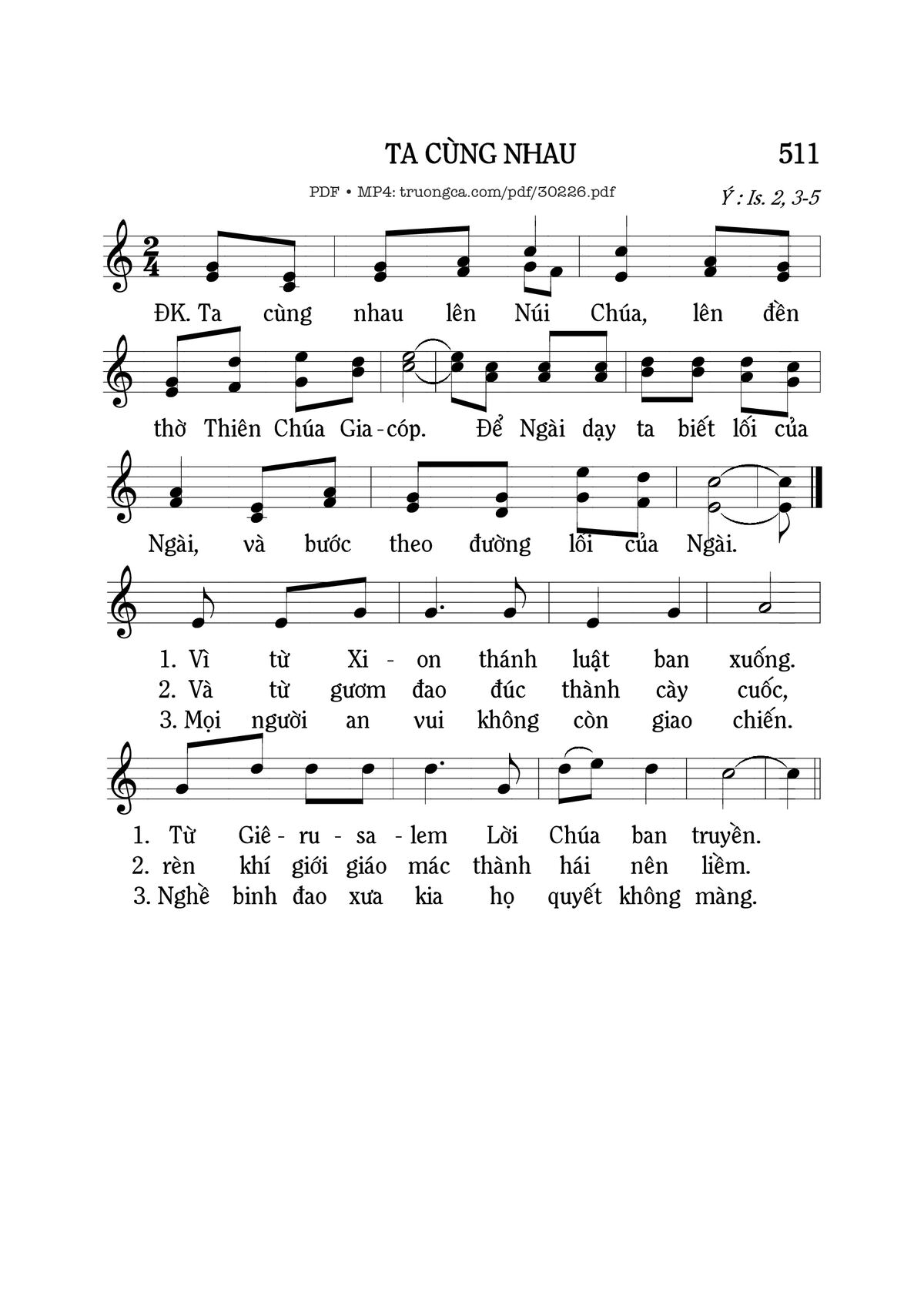 Sheet nhạc có nốt Ta cùng nhau của nhạc sĩ Mi Trầm và file PDF nốt nhạc đăng lên đây nhằm giúp các bạn xướng âm cho đúng nốt và hát thêm hay, chỉ mang tính chất tham khảo, không có mục đích thương mại. Bản quyền thuộc về tác giả và tổ chức nắm bản quyền, Truongca.com không giữ bất kỳ bản quyền của nội dung nào cả. Các bạn có thể tải về bản PDF chất lượng cao, gồm khuông nhạc có nốt với đường link file PDF bên trên.
