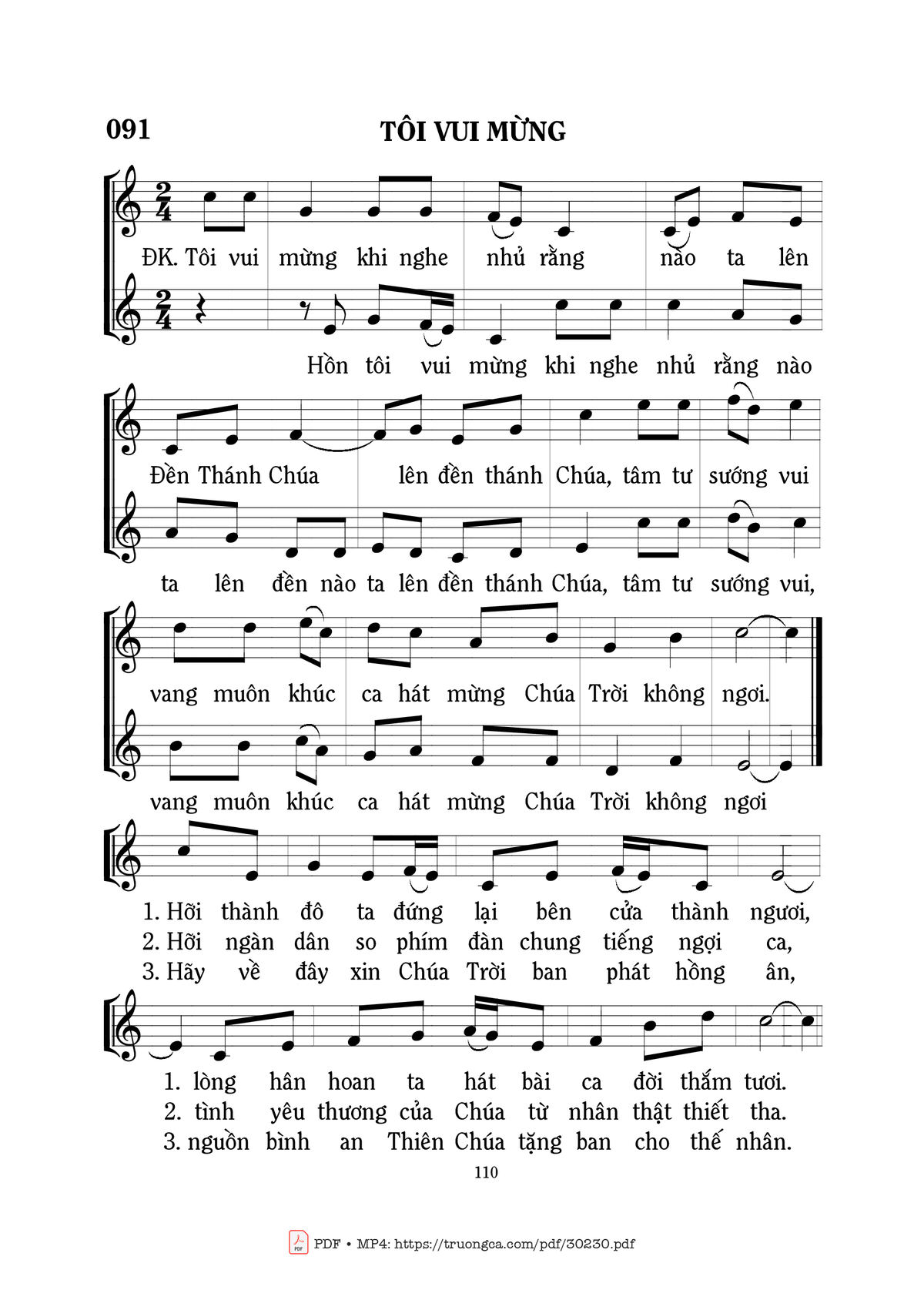 Sheet nhạc có nốt Tôi vui mừng của nhạc sĩ Mi Trầm và file PDF nốt nhạc đăng lên đây nhằm giúp các bạn xướng âm cho đúng nốt và hát thêm hay, chỉ mang tính chất tham khảo, không có mục đích thương mại. Bản quyền thuộc về tác giả và tổ chức nắm bản quyền, Truongca.com không giữ bất kỳ bản quyền của nội dung nào cả. Các bạn có thể tải về bản PDF chất lượng cao, gồm khuông nhạc có nốt với đường link file PDF bên trên.