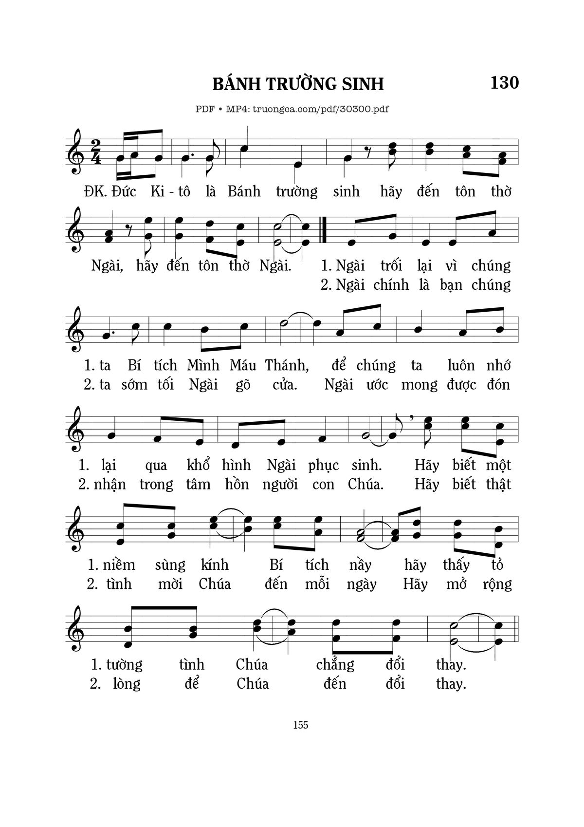 Sheet nhạc có nốt Bánh trường sinh của nhạc sĩ Mi Trầm và file PDF nốt nhạc đăng lên đây nhằm giúp các bạn xướng âm cho đúng nốt và hát thêm hay, chỉ mang tính chất tham khảo, không có mục đích thương mại. Bản quyền thuộc về tác giả và tổ chức nắm bản quyền, Truongca.com không giữ bất kỳ bản quyền của nội dung nào cả. Các bạn có thể tải về bản PDF chất lượng cao, gồm khuông nhạc có nốt với đường link file PDF bên trên.