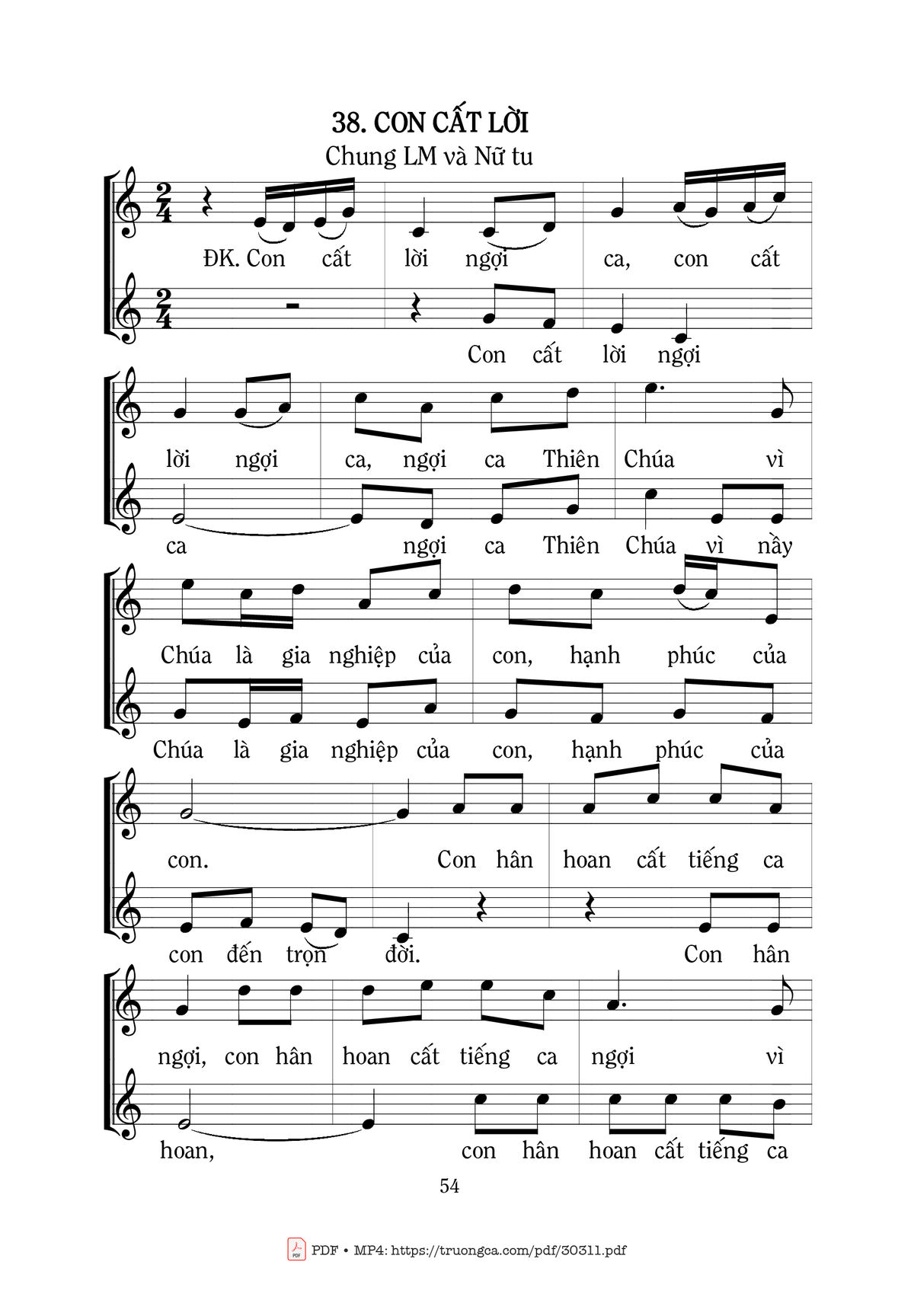 Sheet nhạc có nốt Con cất lời của nhạc sĩ Mi Trầm và file PDF nốt nhạc đăng lên đây nhằm giúp các bạn xướng âm cho đúng nốt và hát thêm hay, chỉ mang tính chất tham khảo, không có mục đích thương mại. Bản quyền thuộc về tác giả và tổ chức nắm bản quyền, Truongca.com không giữ bất kỳ bản quyền của nội dung nào cả. Các bạn có thể tải về bản PDF chất lượng cao, gồm khuông nhạc có nốt với đường link file PDF bên trên.