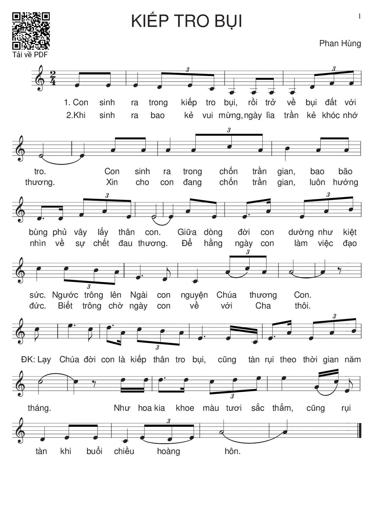 Phan Hùng Con sinh ra trong kiếp tro bụi rồi trở về bụi đất với tro [PDF] [Sheet] [Lời H.A] [Mp4/Midi]