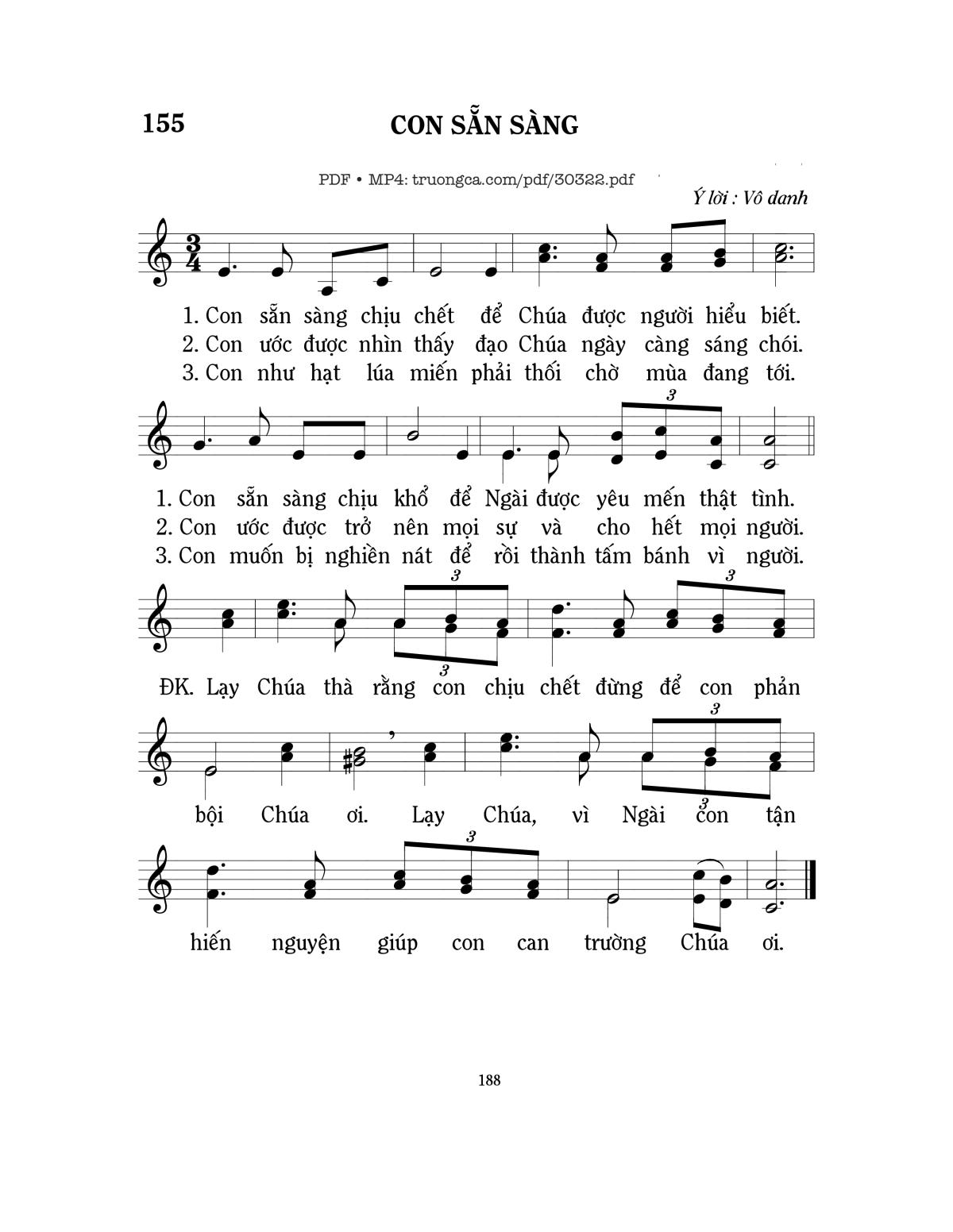 Sheet nhạc có nốt Con sẵn sàng của nhạc sĩ Mi Trầm và file PDF nốt nhạc đăng lên đây nhằm giúp các bạn xướng âm cho đúng nốt và hát thêm hay, chỉ mang tính chất tham khảo, không có mục đích thương mại. Bản quyền thuộc về tác giả và tổ chức nắm bản quyền, Truongca.com không giữ bất kỳ bản quyền của nội dung nào cả. Các bạn có thể tải về bản PDF chất lượng cao, gồm khuông nhạc có nốt với đường link file PDF bên trên.