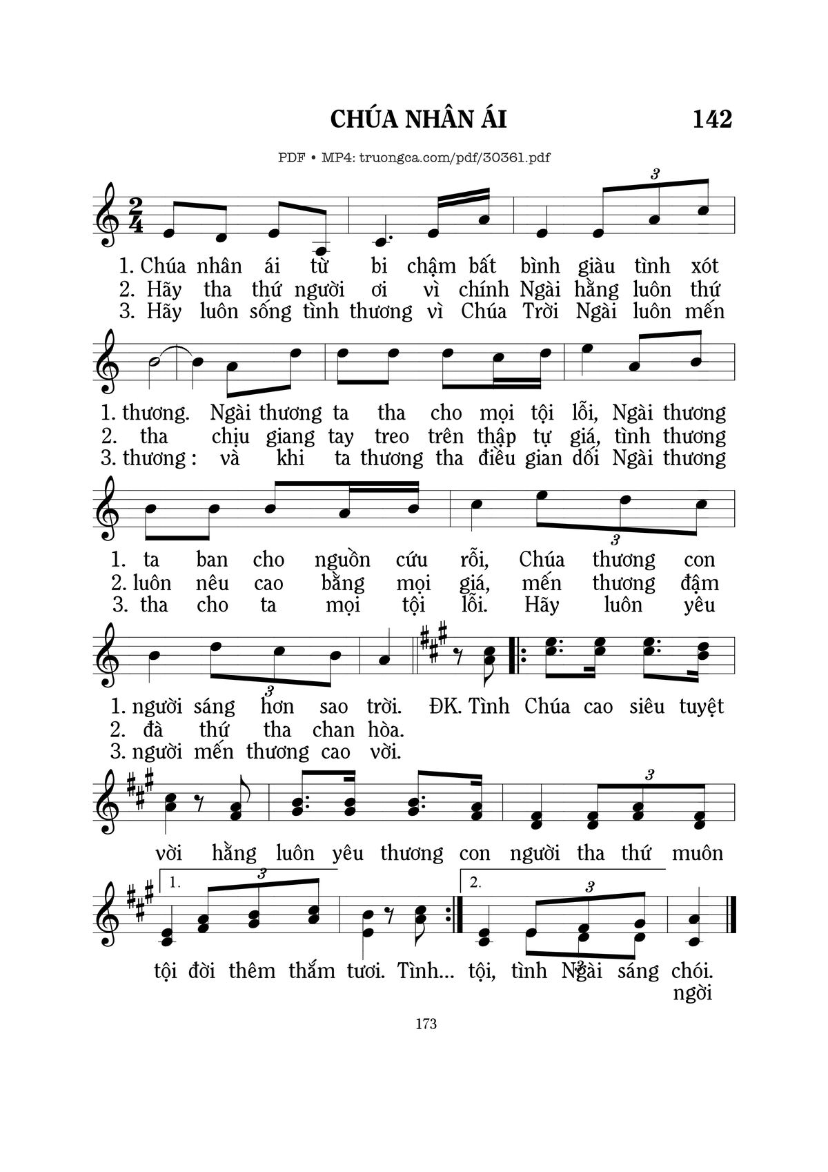 Sheet nhạc có nốt Chúa nhân ái của nhạc sĩ Mi Trầm và file PDF nốt nhạc đăng lên đây nhằm giúp các bạn xướng âm cho đúng nốt và hát thêm hay, chỉ mang tính chất tham khảo, không có mục đích thương mại. Bản quyền thuộc về tác giả và tổ chức nắm bản quyền, Truongca.com không giữ bất kỳ bản quyền của nội dung nào cả. Các bạn có thể tải về bản PDF chất lượng cao, gồm khuông nhạc có nốt với đường link file PDF bên trên.