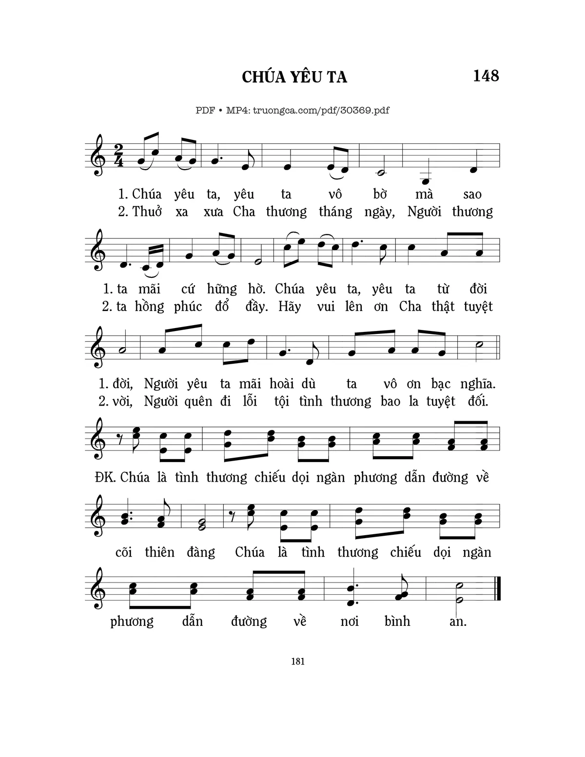 Sheet nhạc có nốt Chúa yêu ta của nhạc sĩ Mi Trầm và file PDF nốt nhạc đăng lên đây nhằm giúp các bạn xướng âm cho đúng nốt và hát thêm hay, chỉ mang tính chất tham khảo, không có mục đích thương mại. Bản quyền thuộc về tác giả và tổ chức nắm bản quyền, Truongca.com không giữ bất kỳ bản quyền của nội dung nào cả. Các bạn có thể tải về bản PDF chất lượng cao, gồm khuông nhạc có nốt với đường link file PDF bên trên.