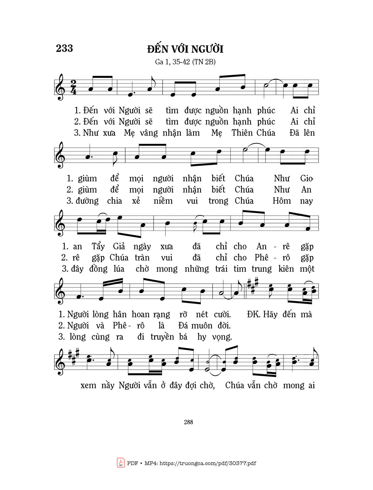Sheet nhạc có nốt Đến với Người của nhạc sĩ Mi Trầm và file PDF nốt nhạc đăng lên đây nhằm giúp các bạn xướng âm cho đúng nốt và hát thêm hay, chỉ mang tính chất tham khảo, không có mục đích thương mại. Bản quyền thuộc về tác giả và tổ chức nắm bản quyền, Truongca.com không giữ bất kỳ bản quyền của nội dung nào cả. Các bạn có thể tải về bản PDF chất lượng cao, gồm khuông nhạc có nốt với đường link file PDF bên trên.