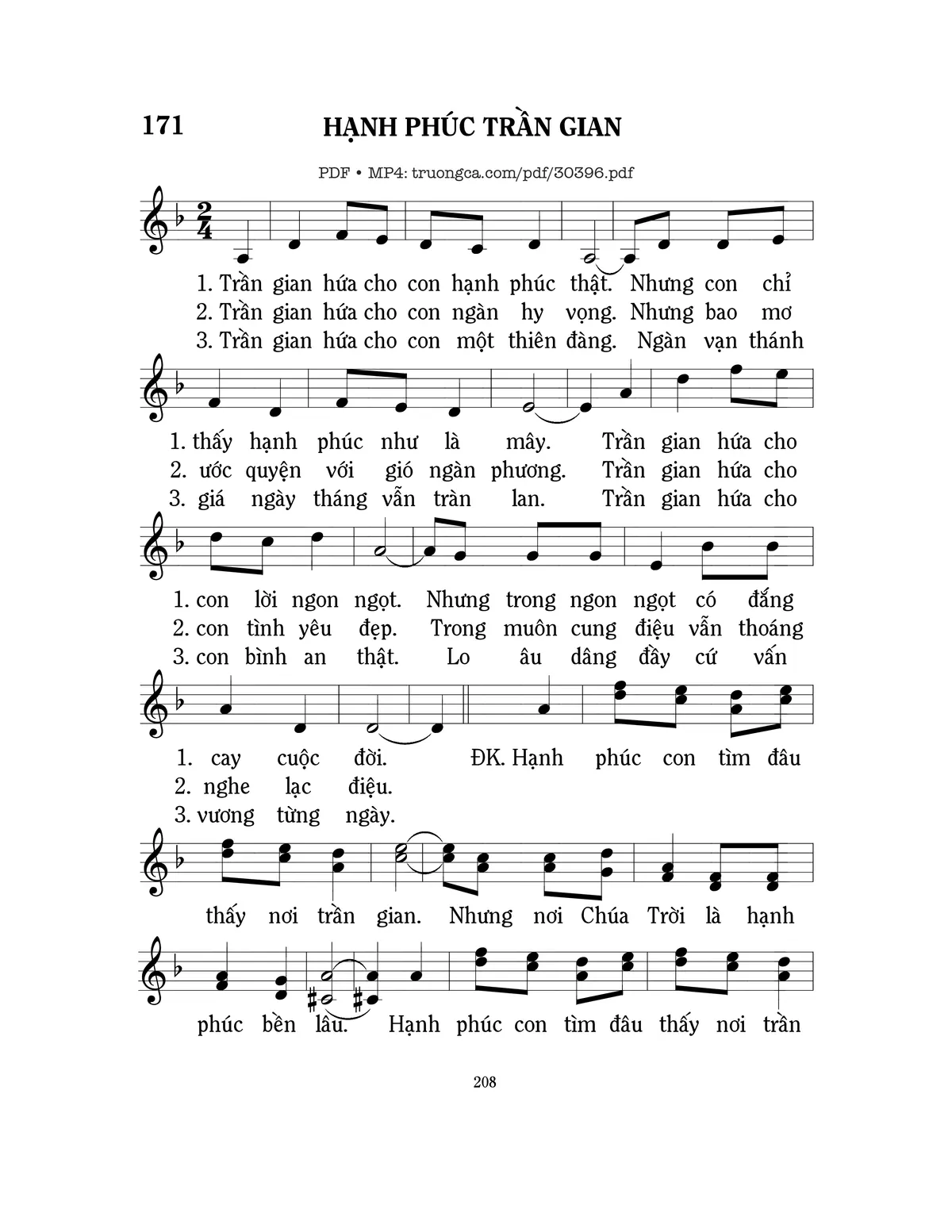 Sheet nhạc có nốt Hạnh Phúc Trần Gian của nhạc sĩ Mi Trầm và file PDF nốt nhạc đăng lên đây nhằm giúp các bạn xướng âm cho đúng nốt và hát thêm hay, chỉ mang tính chất tham khảo, không có mục đích thương mại. Bản quyền thuộc về tác giả và tổ chức nắm bản quyền, Truongca.com không giữ bất kỳ bản quyền của nội dung nào cả. Các bạn có thể tải về bản PDF chất lượng cao, gồm khuông nhạc có nốt với đường link file PDF bên trên.