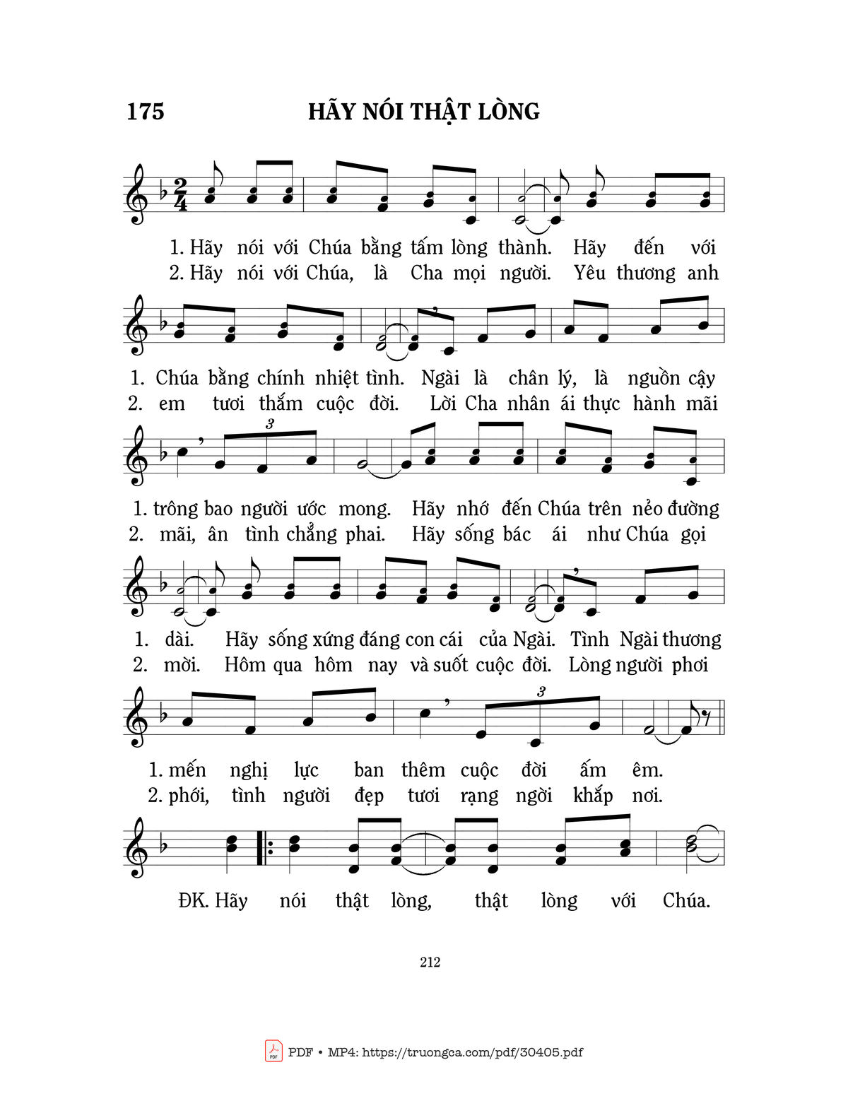 Sheet nhạc có nốt Hãy nói thật lòng của nhạc sĩ Mi Trầm và file PDF nốt nhạc đăng lên đây nhằm giúp các bạn xướng âm cho đúng nốt và hát thêm hay, chỉ mang tính chất tham khảo, không có mục đích thương mại. Bản quyền thuộc về tác giả và tổ chức nắm bản quyền, Truongca.com không giữ bất kỳ bản quyền của nội dung nào cả. Các bạn có thể tải về bản PDF chất lượng cao, gồm khuông nhạc có nốt với đường link file PDF bên trên.