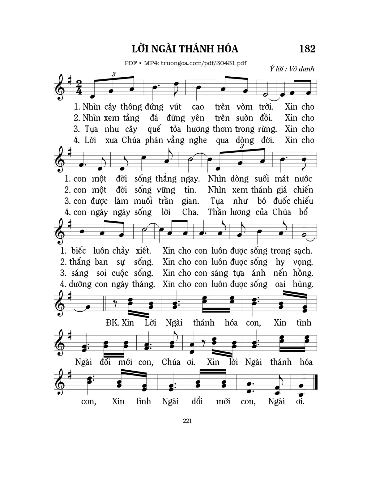Sheet nhạc có nốt Lời Ngài thánh hóa của nhạc sĩ Mi Trầm và file PDF nốt nhạc đăng lên đây nhằm giúp các bạn xướng âm cho đúng nốt và hát thêm hay, chỉ mang tính chất tham khảo, không có mục đích thương mại. Bản quyền thuộc về tác giả và tổ chức nắm bản quyền, Truongca.com không giữ bất kỳ bản quyền của nội dung nào cả. Các bạn có thể tải về bản PDF chất lượng cao, gồm khuông nhạc có nốt với đường link file PDF bên trên.