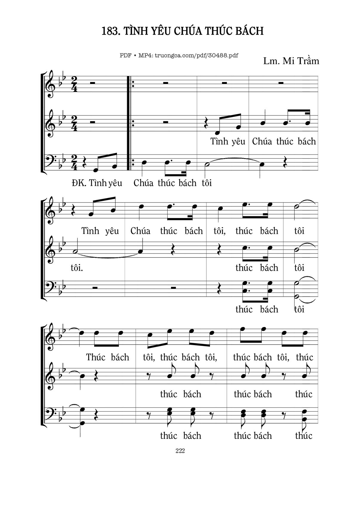 Sheet nhạc có nốt Tình yêu Chúa thúc bách của nhạc sĩ Mi Trầm và file PDF nốt nhạc đăng lên đây nhằm giúp các bạn xướng âm cho đúng nốt và hát thêm hay, chỉ mang tính chất tham khảo, không có mục đích thương mại. Bản quyền thuộc về tác giả và tổ chức nắm bản quyền, Truongca.com không giữ bất kỳ bản quyền của nội dung nào cả. Các bạn có thể tải về bản PDF chất lượng cao, gồm khuông nhạc có nốt với đường link file PDF bên trên.