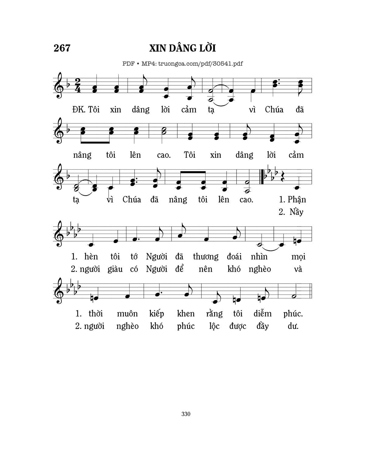 Sheet nhạc có nốt Xin dâng lời của nhạc sĩ Mi Trầm và file PDF nốt nhạc đăng lên đây nhằm giúp các bạn xướng âm cho đúng nốt và hát thêm hay, chỉ mang tính chất tham khảo, không có mục đích thương mại. Bản quyền thuộc về tác giả và tổ chức nắm bản quyền, Truongca.com không giữ bất kỳ bản quyền của nội dung nào cả. Các bạn có thể tải về bản PDF chất lượng cao, gồm khuông nhạc có nốt với đường link file PDF bên trên.