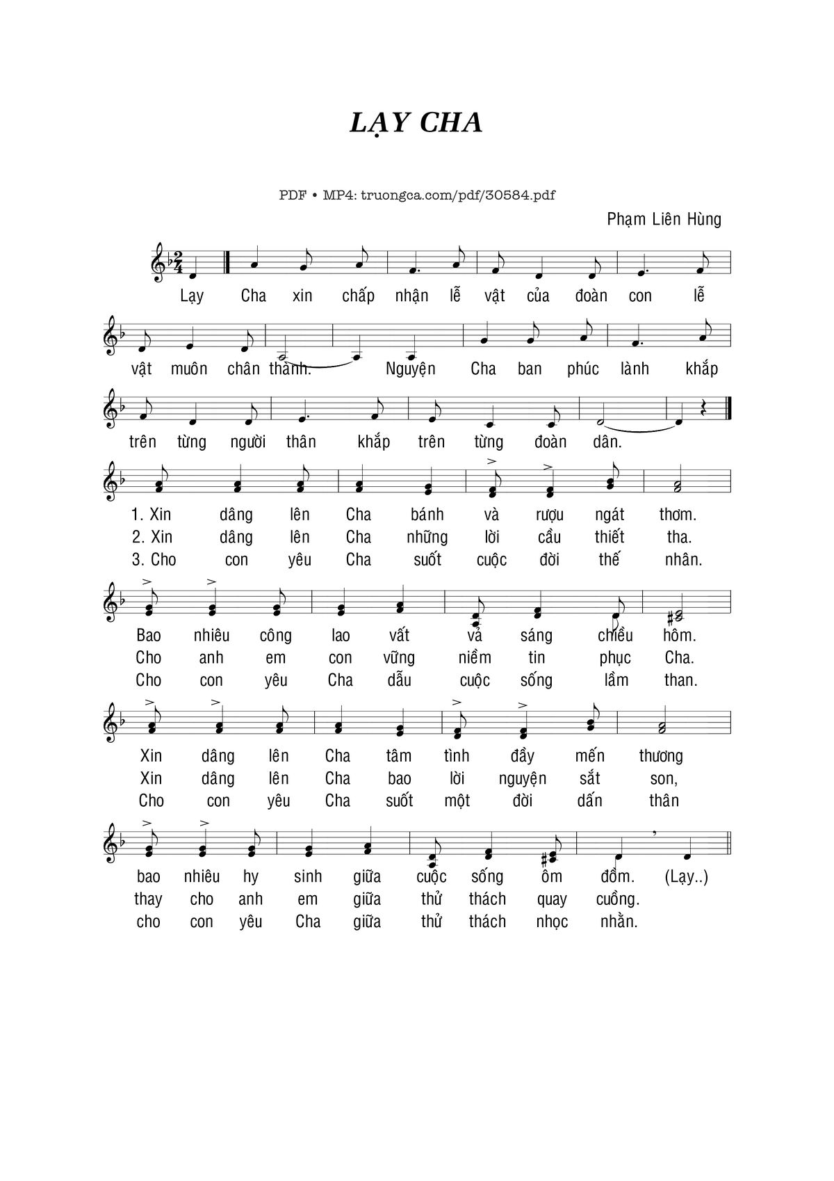Trang 1 của Sheet nhạc PDF bài hát Lạy Cha - Phạm Liên Hùng