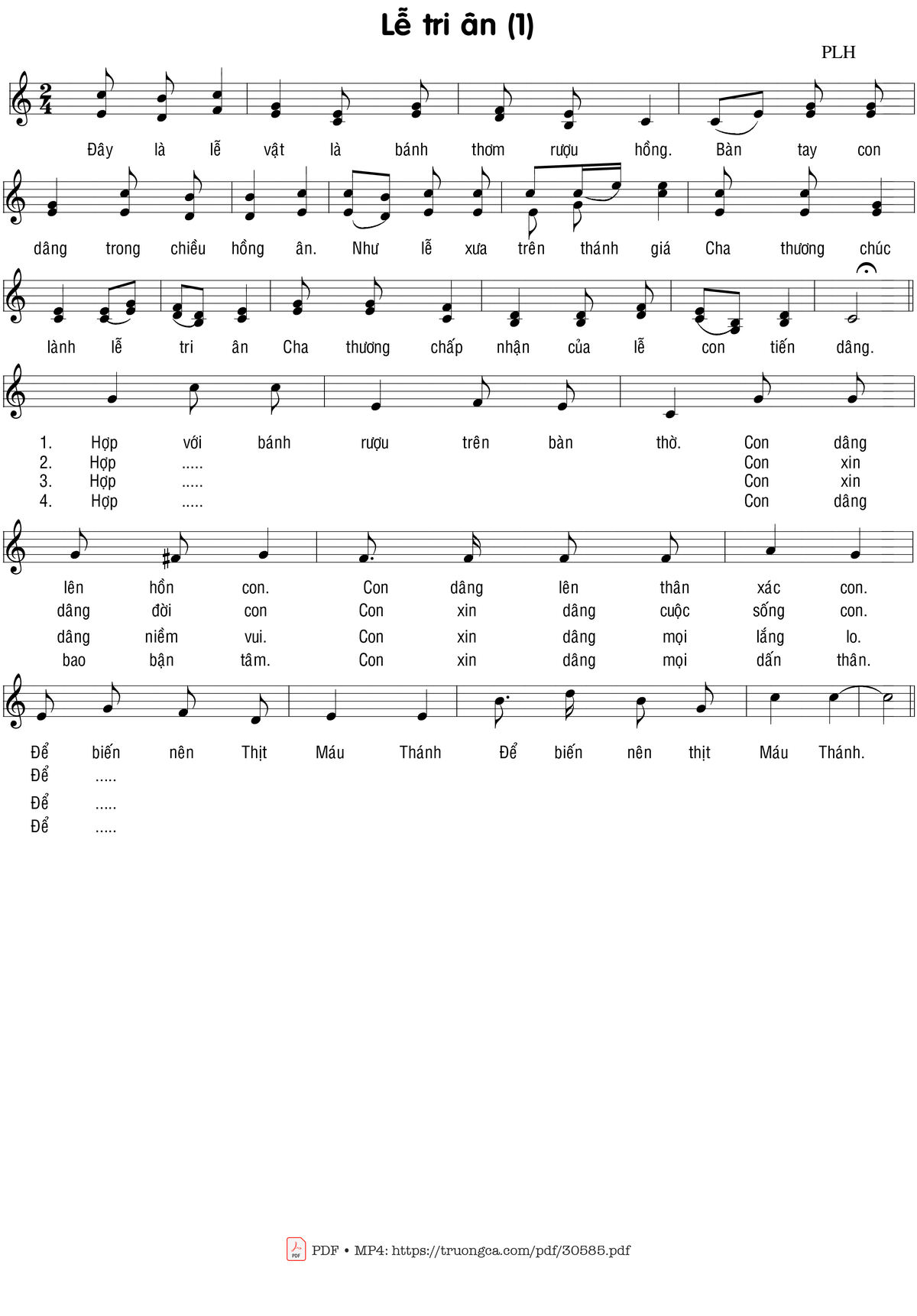 Sheet nhạc có nốt Lễ tri ân (1) của nhạc sĩ Phạm Liên Hùng và file PDF nốt nhạc đăng lên đây nhằm giúp các bạn xướng âm cho đúng nốt và hát thêm hay, chỉ mang tính chất tham khảo, không có mục đích thương mại. Bản quyền thuộc về tác giả và tổ chức nắm bản quyền, Truongca.com không giữ bất kỳ bản quyền của nội dung nào cả. Các bạn có thể tải về bản PDF chất lượng cao, gồm khuông nhạc có nốt với đường link file PDF bên trên.