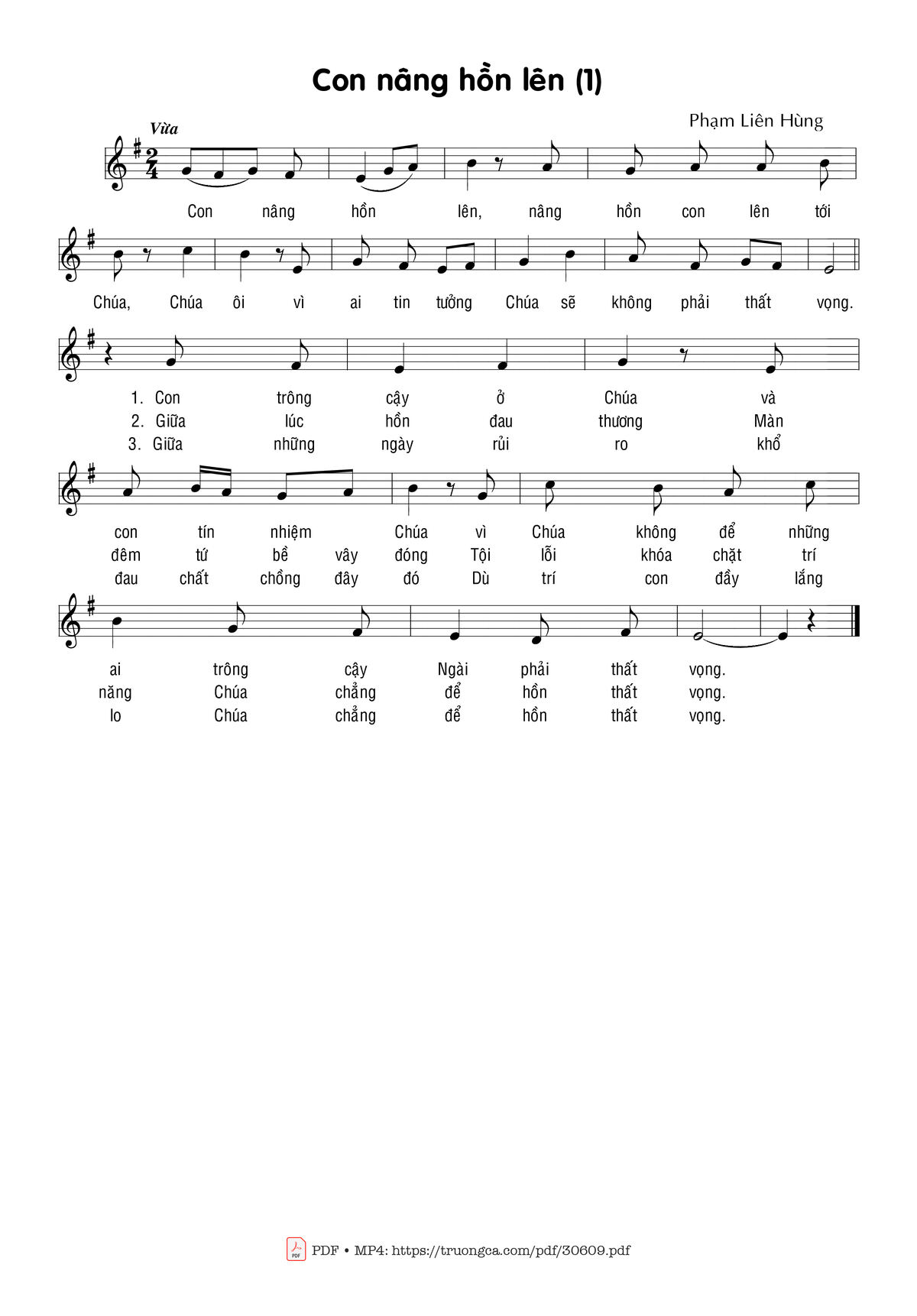 Sheet nhạc có nốt Con nâng hồn lên (1) của nhạc sĩ Phạm Liên Hùng và file PDF nốt nhạc đăng lên đây nhằm giúp các bạn xướng âm cho đúng nốt và hát thêm hay, chỉ mang tính chất tham khảo, không có mục đích thương mại. Bản quyền thuộc về tác giả và tổ chức nắm bản quyền, Truongca.com không giữ bất kỳ bản quyền của nội dung nào cả. Các bạn có thể tải về bản PDF chất lượng cao, gồm khuông nhạc có nốt với đường link file PDF bên trên.