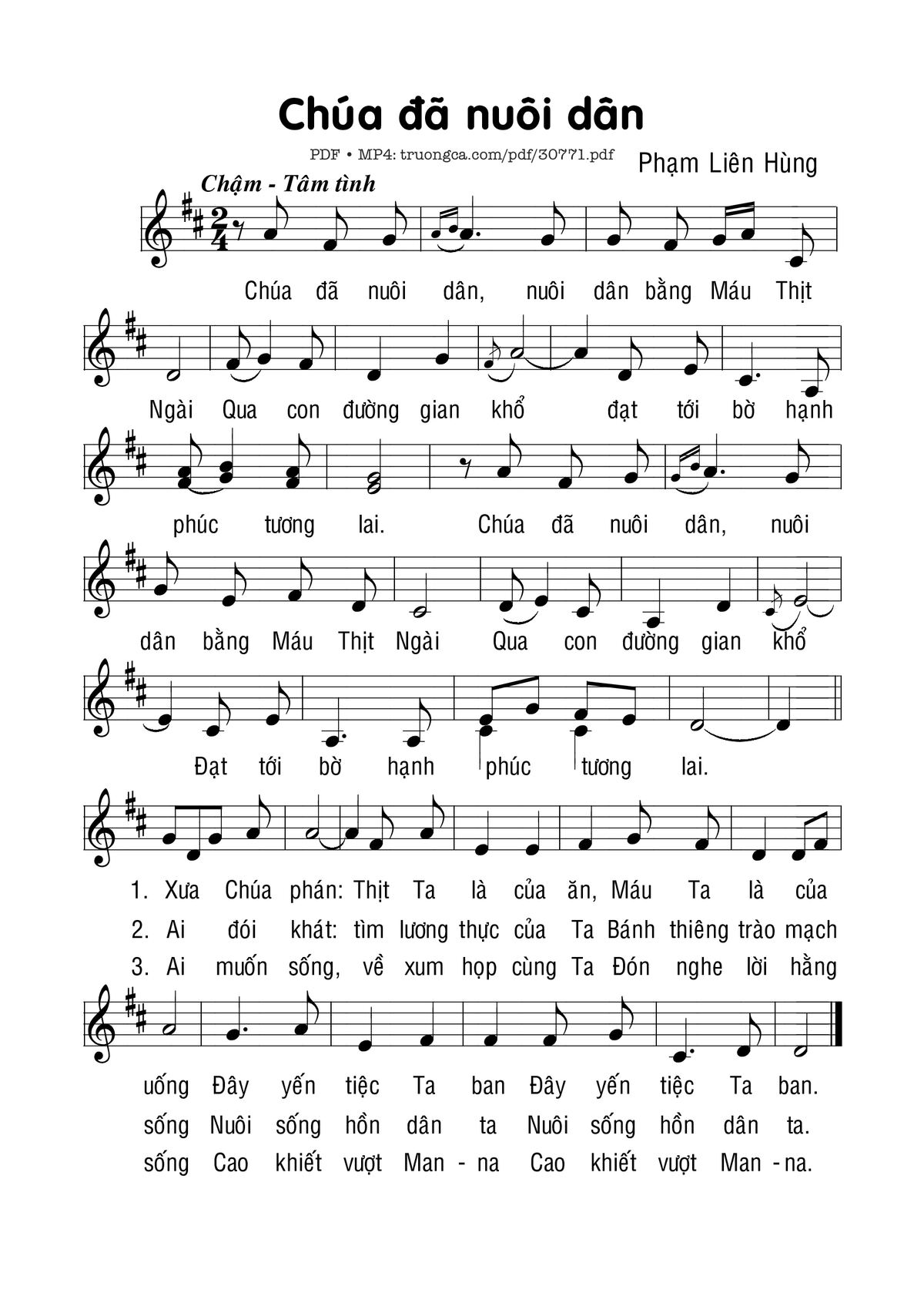 Trang 1 của Sheet nhạc PDF bài hát Chúa đã nuôi dân - Phạm Liên Hùng