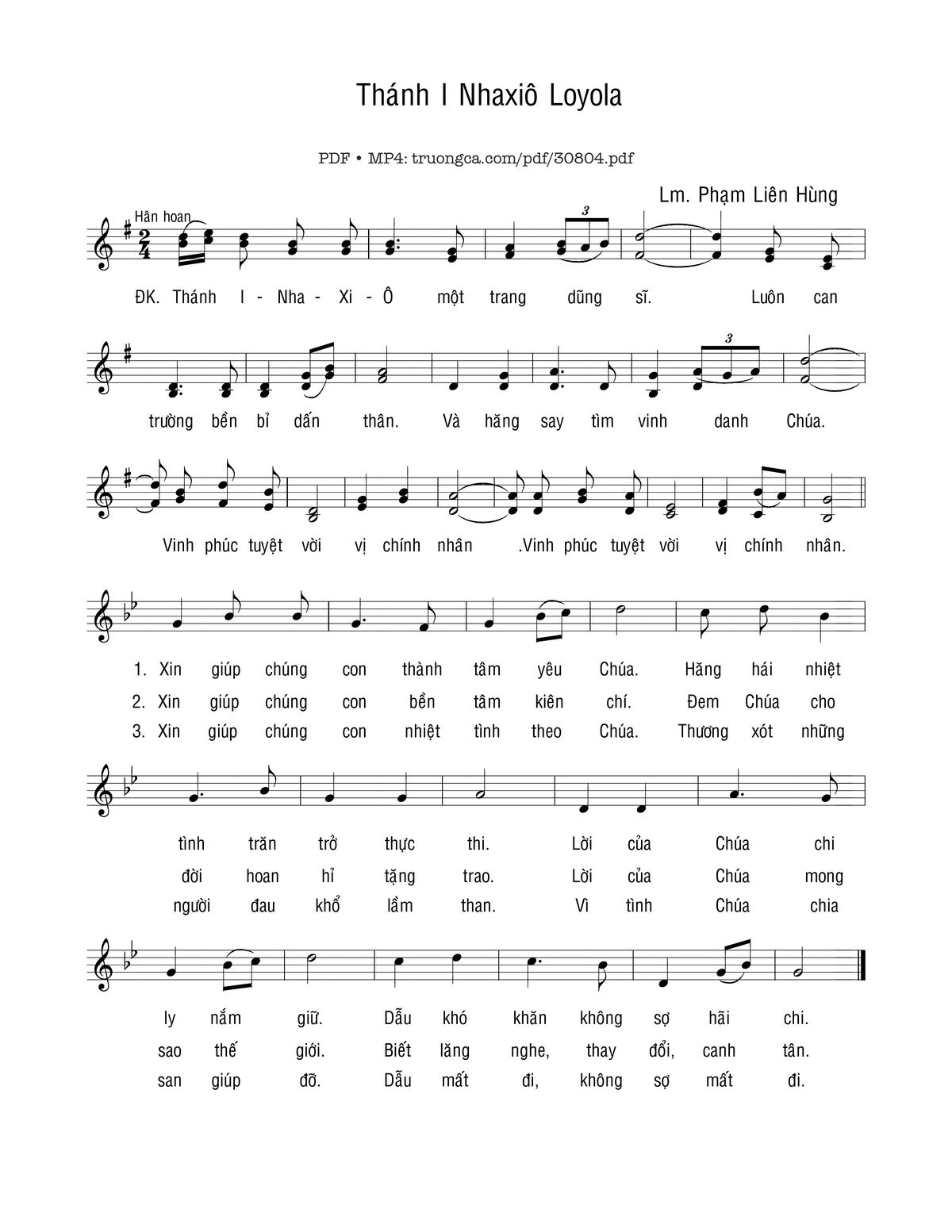 Trang 1 của Sheet nhạc PDF bài hát Thánh Inhaxiô Loyola - Phạm Liên Hùng