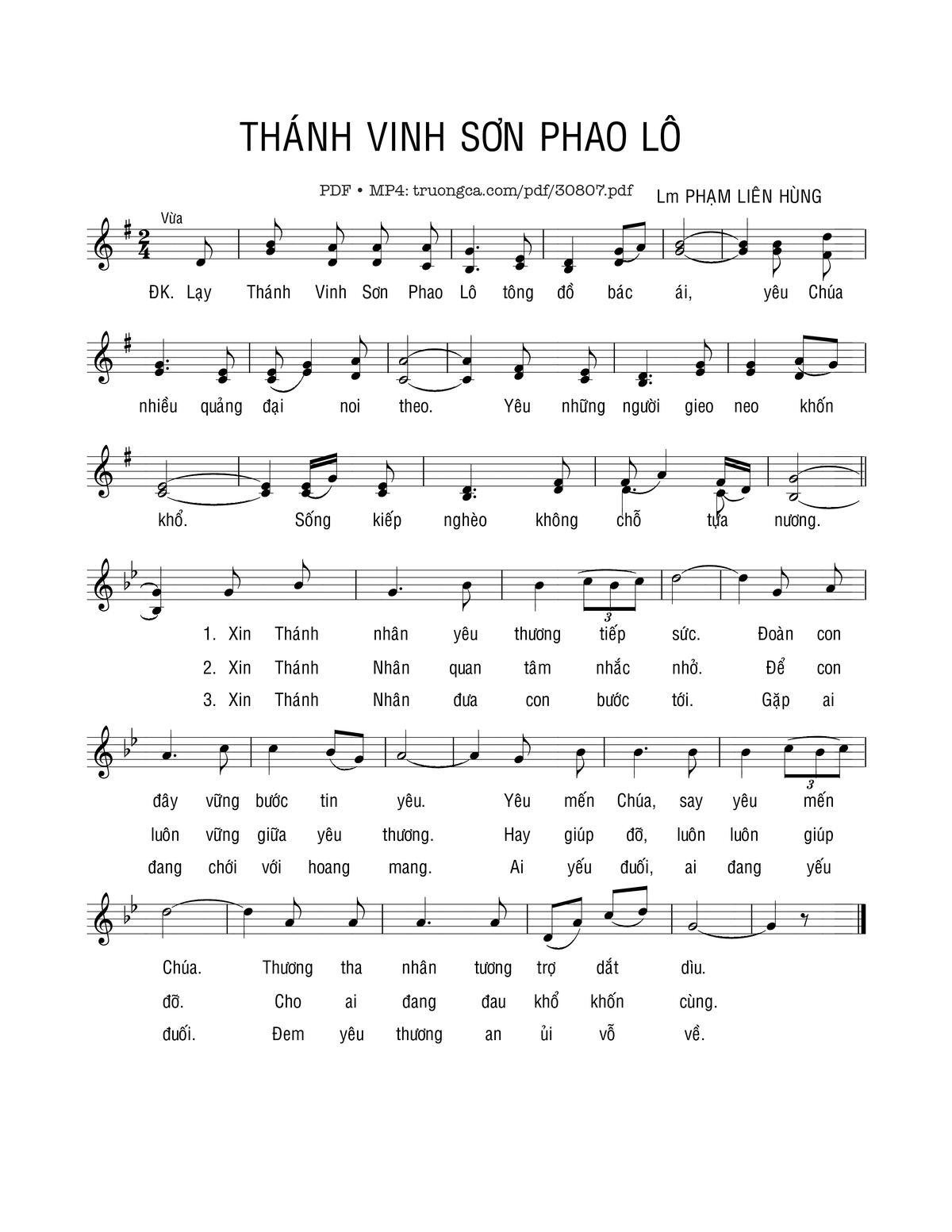 Trang 1 của Sheet nhạc PDF bài hát Thánh Vinh Sơn Phaolô - Phạm Liên Hùng