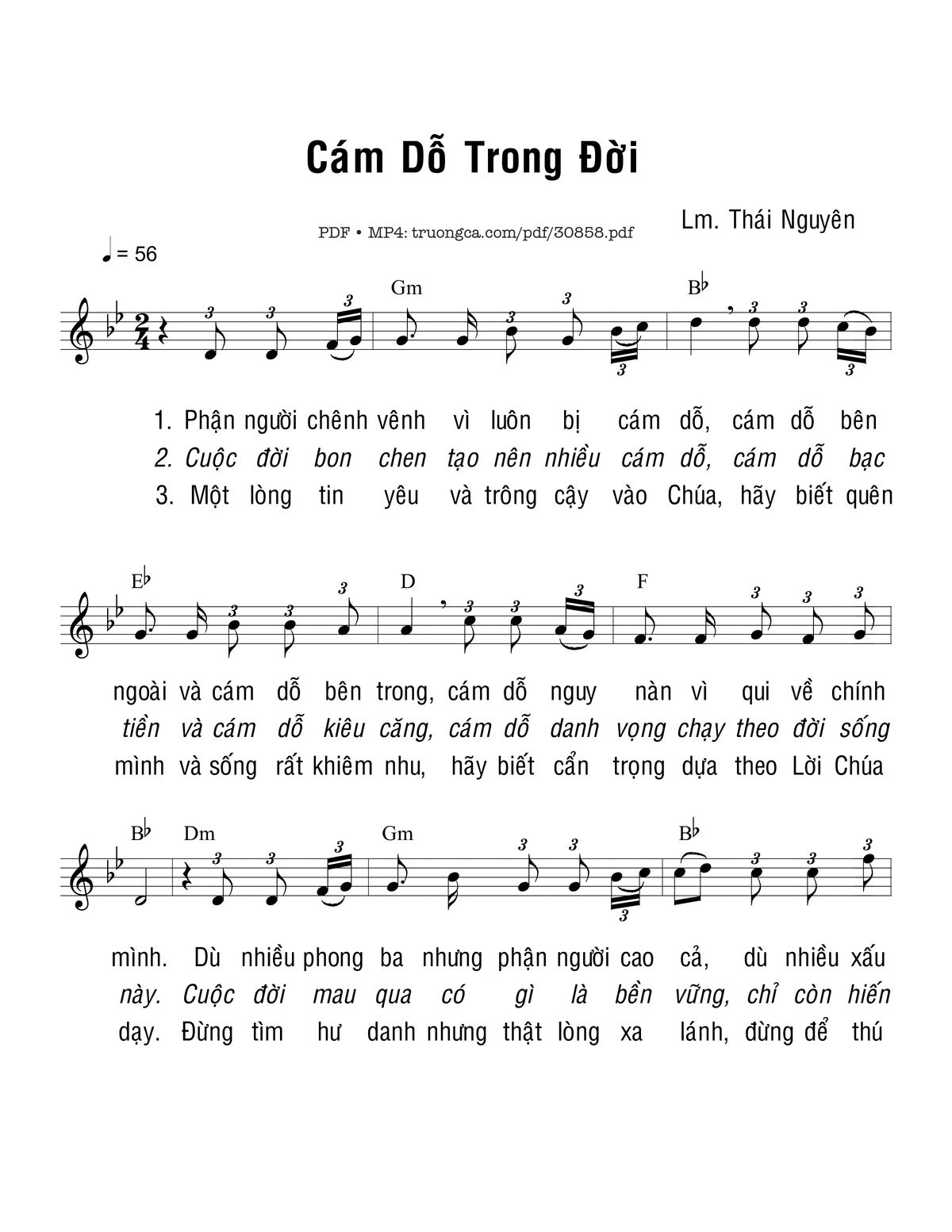 Trang 1 của Sheet nhạc PDF bài hát Cám dỗ trong đời - Thái Nguyên