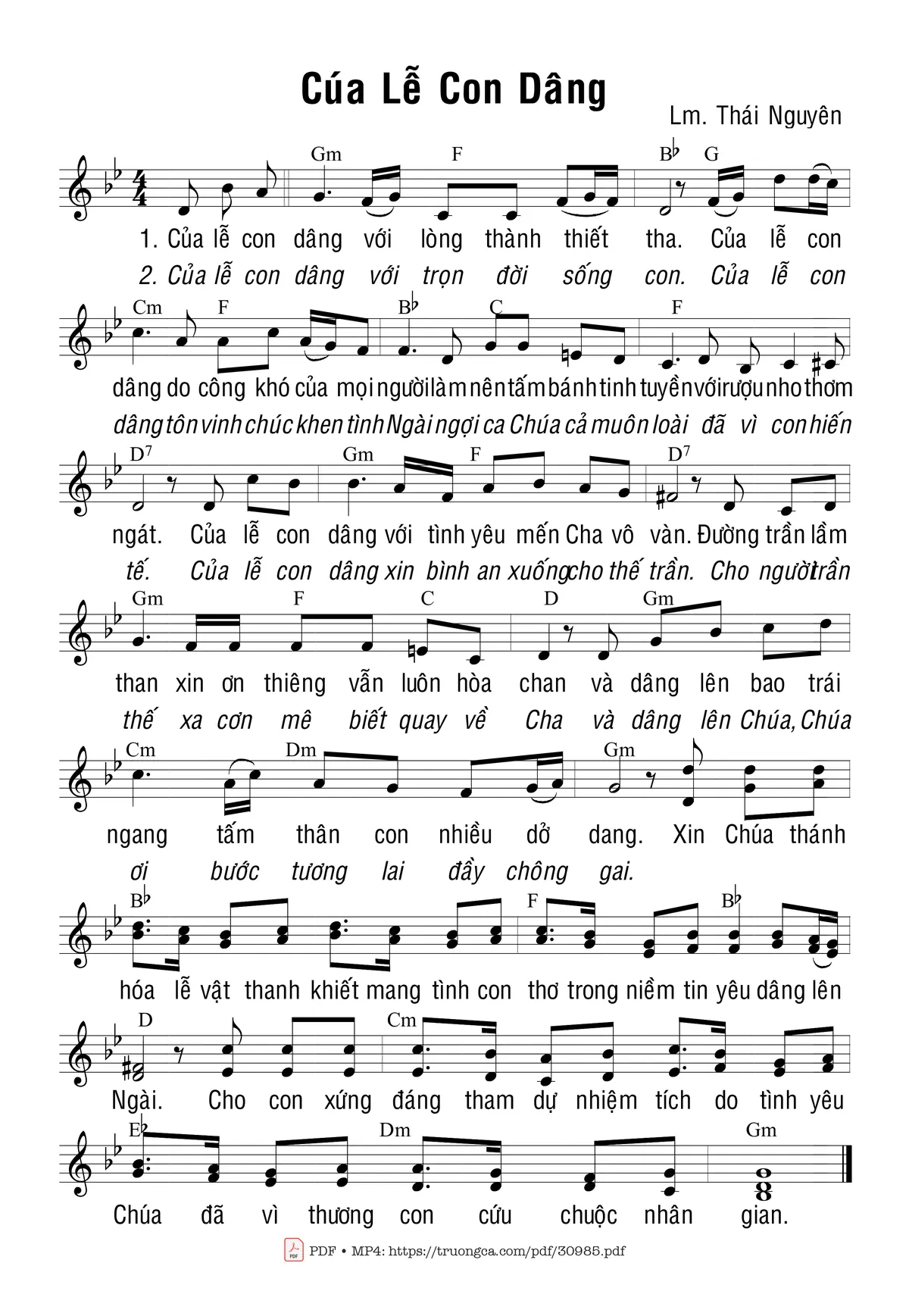Sheet Của Lễ Con Dâng PDF (Thái Nguyên), hợp âm