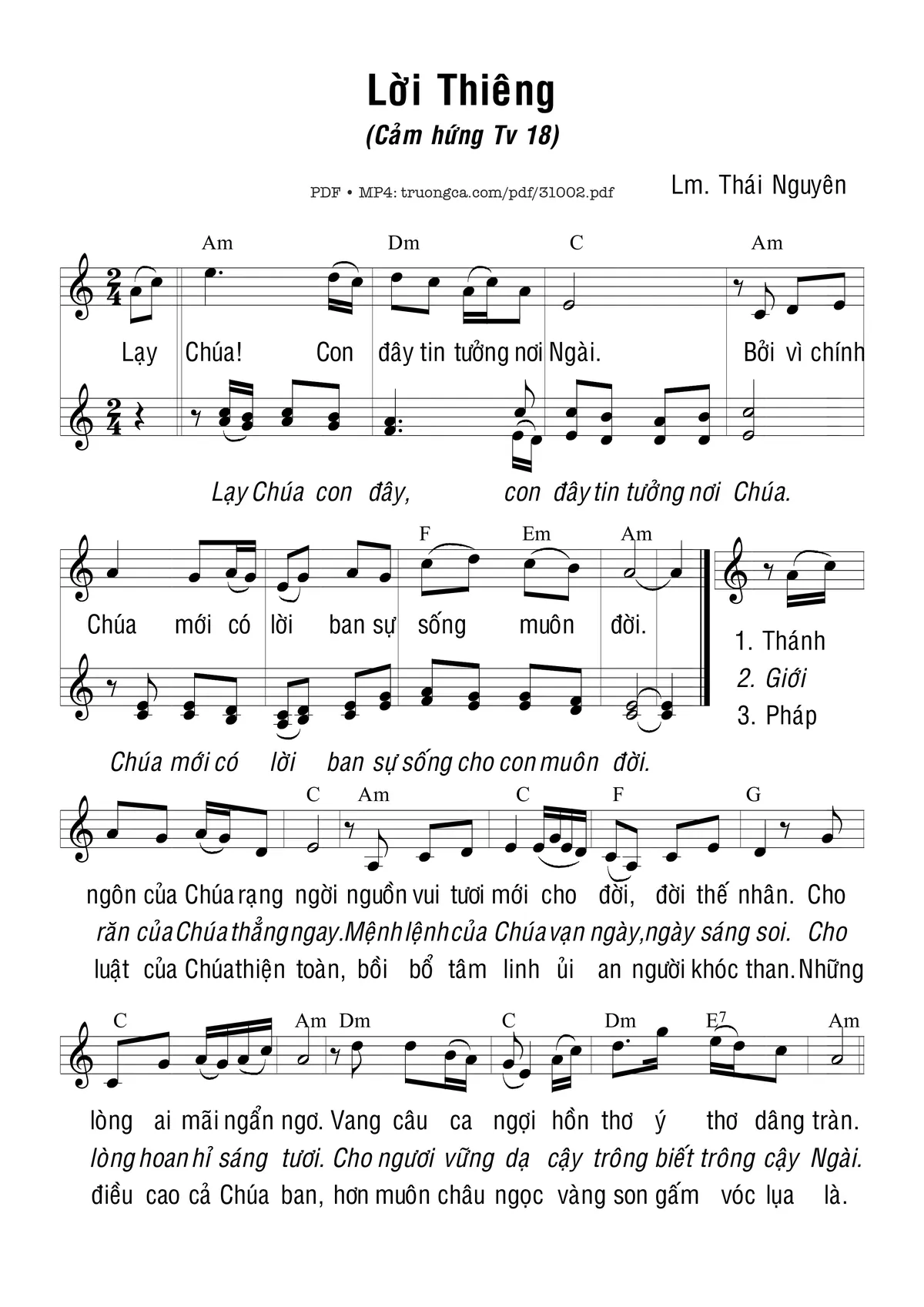 Sheet Lời thiêng PDF (Thái Nguyên), hợp âm
