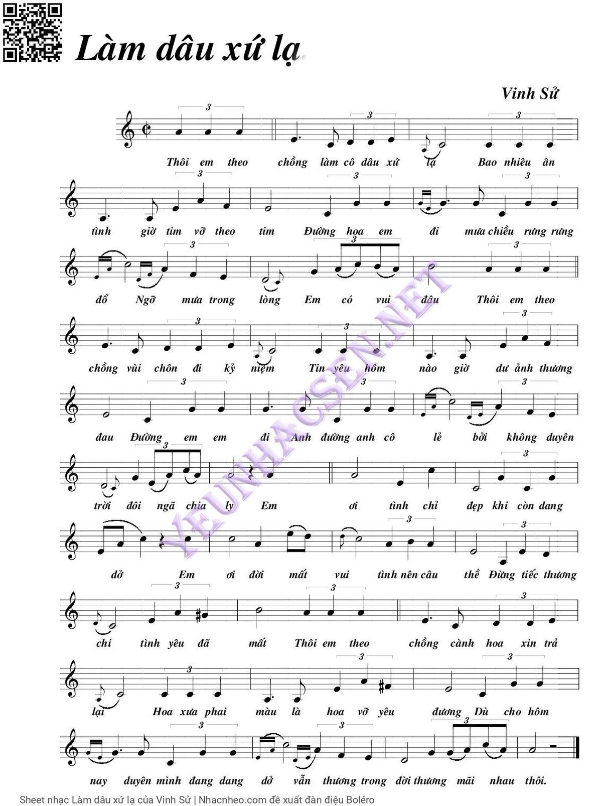 Phần nghe hát Làm dâu xứ lạ (Vinh Sử) được nhúng từ Youtube, Musescore hoặc link ngoài và chịu sự kiểm soát bản quyền của bên thứ ba đó, vì vậy có thể bị xóa hoặc chèn quảng cáo bất kỳ lúc nào. Nếu bạn không nghe - xem được ca sĩ hát tức là đã bị Youtube hoặc Musescore kiểm soát.