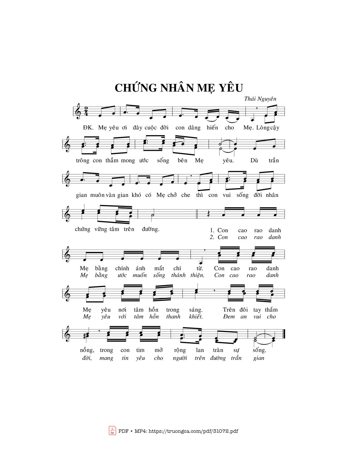 Trang 1 của Sheet nhạc PDF bài hát Chứng nhân Mẹ yêu - Thái Nguyên