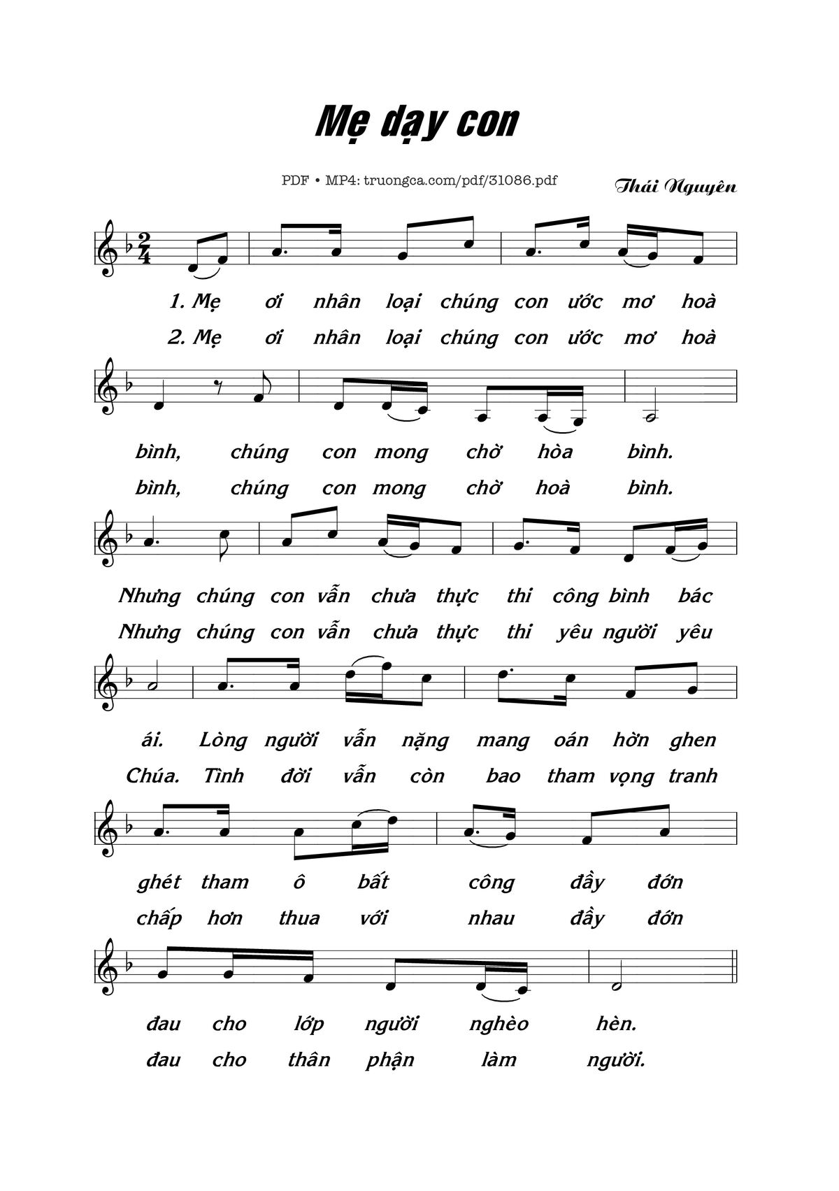 Trang 1 của Sheet nhạc PDF bài hát Mẹ Dạy Con - Thái Nguyên
