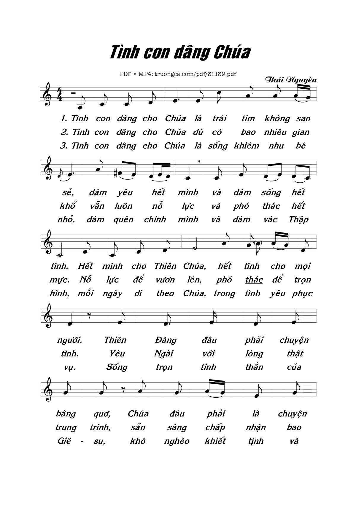 Sheet Tình con dâng Chúa PDF (Thái Nguyên), hợp âm