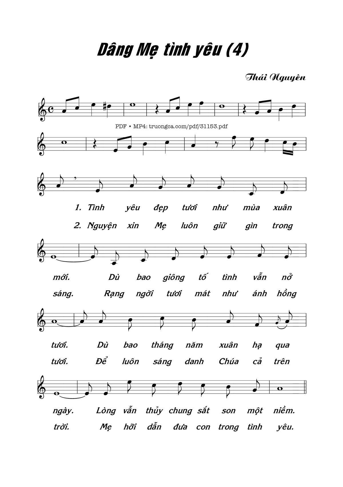 Trang 1 của Sheet nhạc PDF bài hát Dâng Mẹ tình yêu 4 - Thái Nguyên