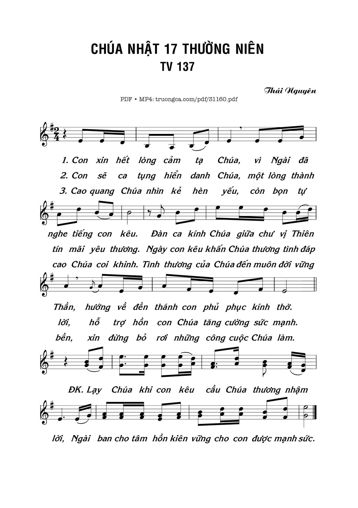 Thái Nguyên Con xin hết lòng cảm tạ Chúa vì Ngài đã nghe tiếng con kêu [PDF] [Sheet] [Lời H.A] [Mp4/Midi]