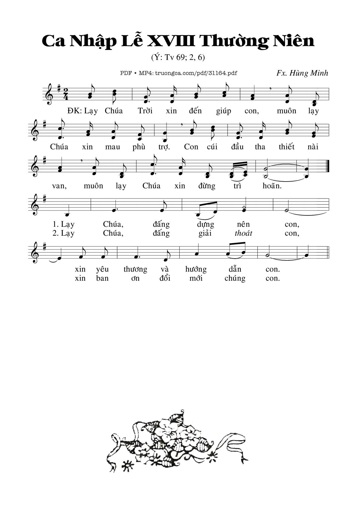 Điệp khúc. Lạy Chúa Trời xin đến giúp con, muôn lạy Chúa xin mau phù trợ. Con cúi đầu tha thiết nài van, muôn lạy Chúa xin đừng trì hoãn.